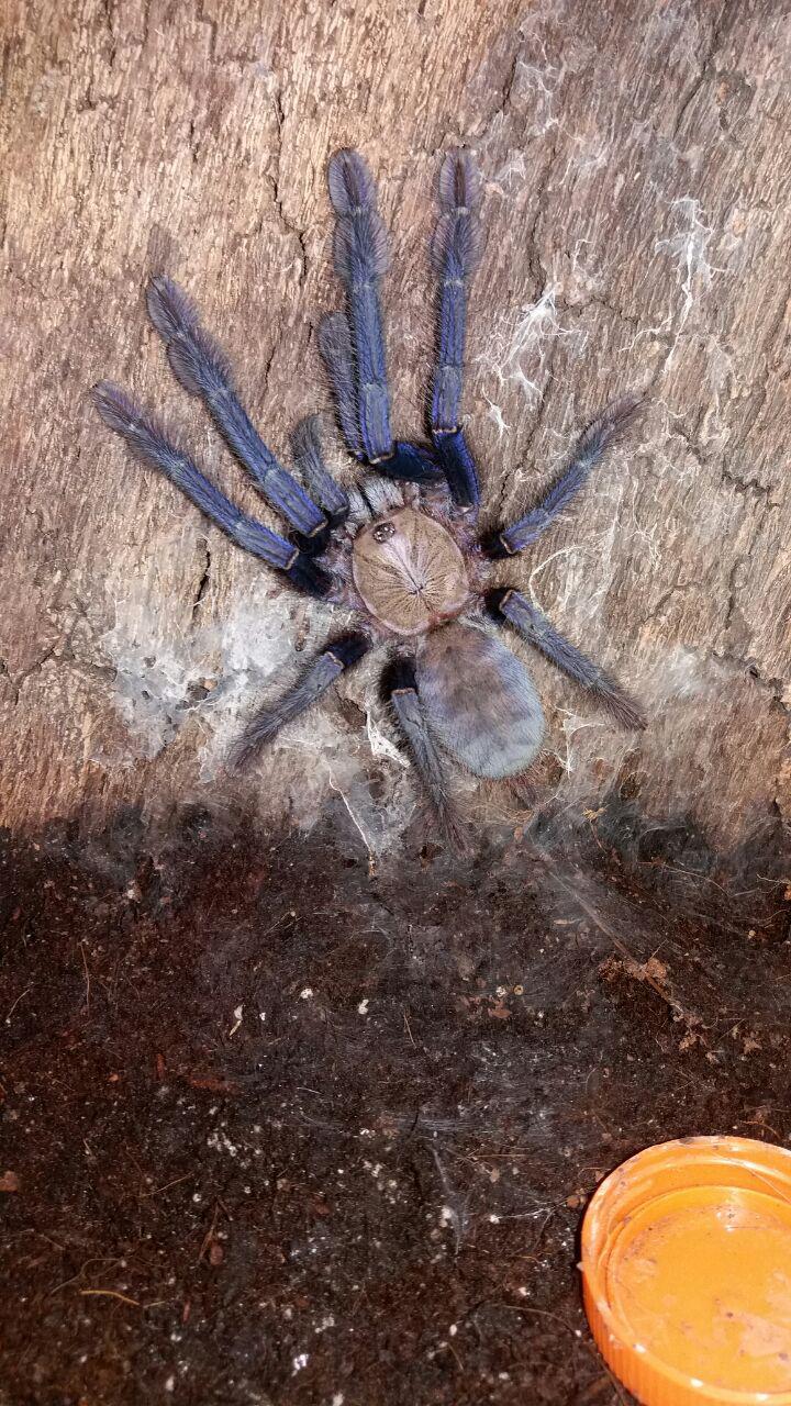 Omothymus violaceopes (ex Lampropelma violaceopes) (16 L) ♀. Предположительно "фантомная" dark form. На прошлой линьке давала у меня кокон.
