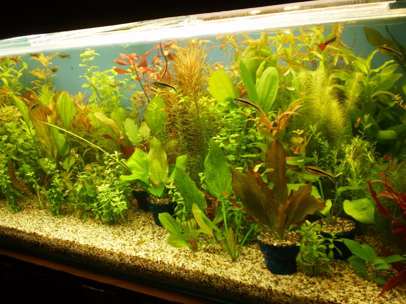П.С.Грунт крупноват,такой эхинодорус (похож на Розе),нужно сажать на задний план,при нормальном питании и росте,он может занять две площади вашего аквариума.При балансировке макроэлементов,вам необходимо у кого нибудь позычить жмут роголистника,дабы избежать накопления пит.веществ,т.к плотность посадки у вас не очень Скрытый текст