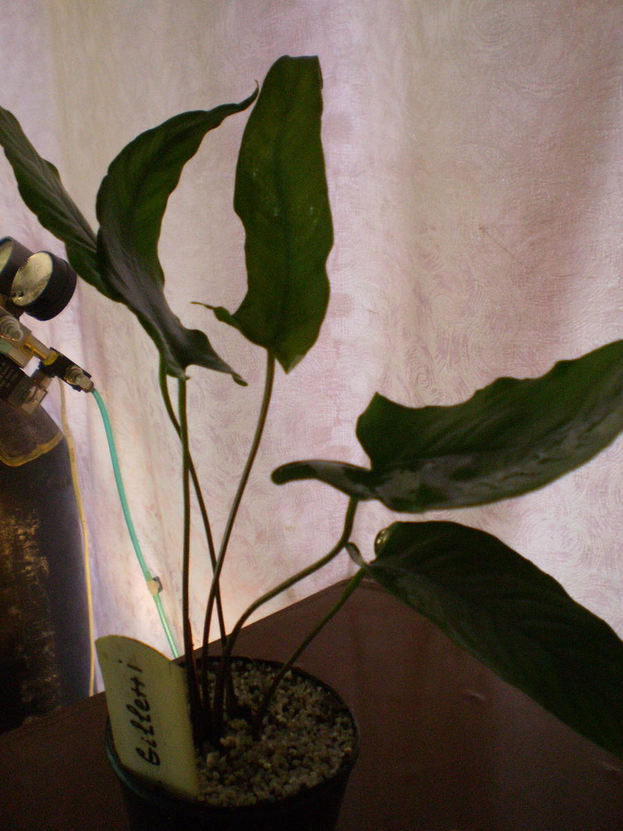 В прошлый раз я показывал фото нового листа Жилле,который был более вытянут в длину,и менее чем в ширину,если сравнивать с предыдущими листиками."Крайний" лист принял форму как идентичную листьям с какими я их получил.Возможно всё же влияет кол-во нитратов,но пока точно не выяснил.На размер 100% влияет(сужу по вновь выпущенным листьям Шизматоглоттиса).