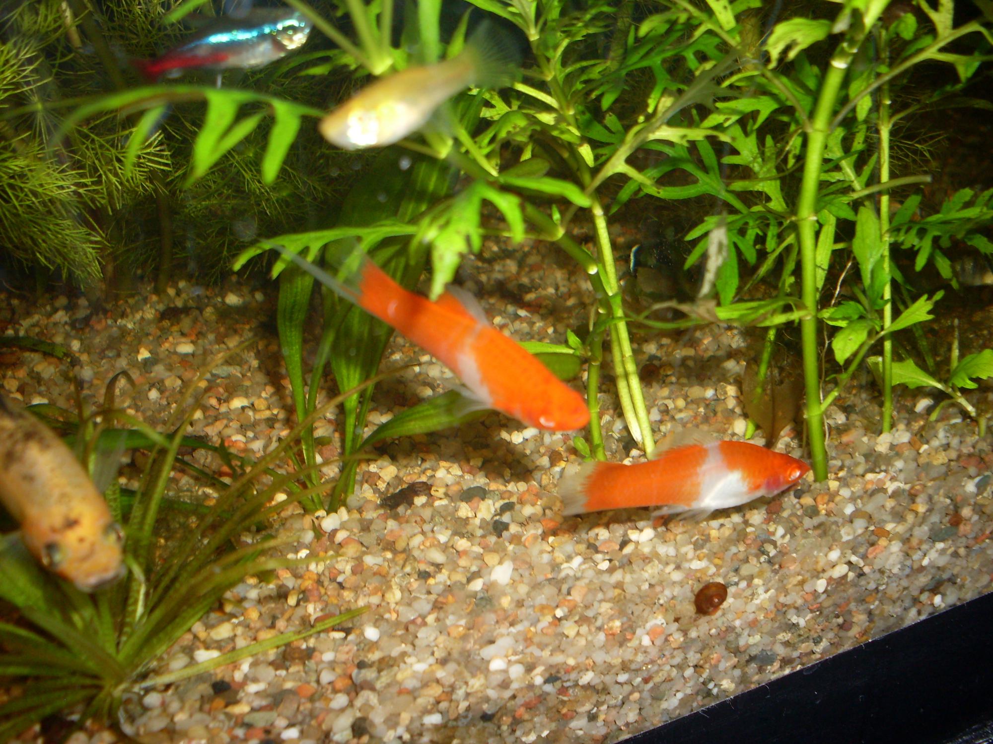 Вот фото, там два самца. Один просто желтый второй с темными плавниками. Также меняю самца меченосца Санта-клаус на самку, самца лялиуса на плитку заморозки, самца анциструса отдам, если сумею поймать