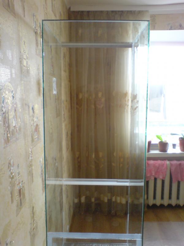 на бокой сделать сдвижные тоже не подходит если их делать из двух половин будет очень узко (ширина всего 50см) и не удобно обслуживать террариум. если что бы отезжала боковая стенка тоже плохо потому как террариум стоит возле стены то отезжать та дверка может только вперед (у меня так было в старом террариуме) результат очень часто нужно менять стекло случайно сломанные стекла. этот вариант что я зделал мне очень нравится. притом закрывается на замок и террариум вскрыть как сломать стекло или профиль или разбить стекло ни как нельзя, а при наличии классного племмяника не лишние это