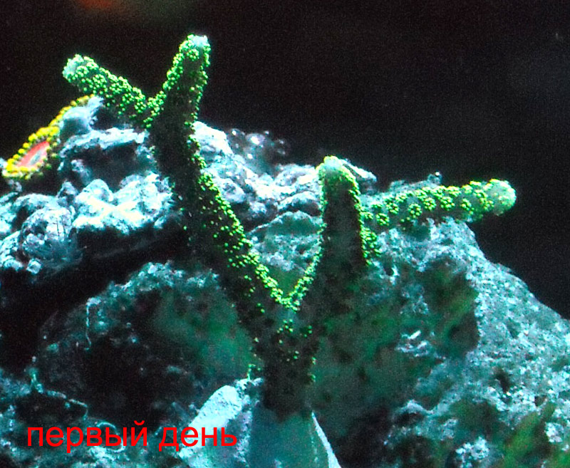 1. Пришлось расфраговать акропору, поскольку у нее потихоньку оголялся скелет с теневой стороны.