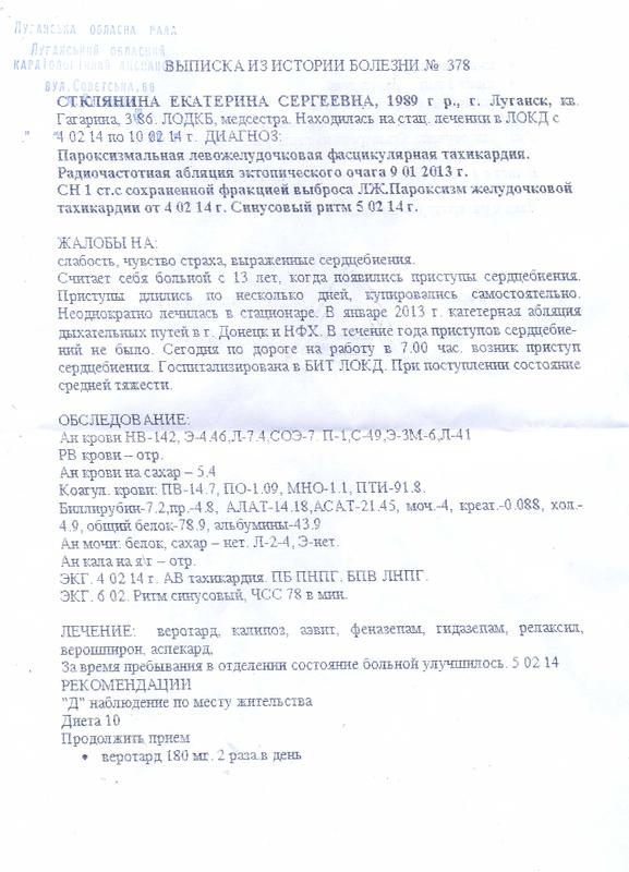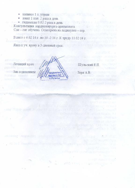 Звонил врачь из Донецка сказала денег надо около 4х тысяч, ура хоть не десять как в прошлый раз. обещала прислать направление по почте но что то пока никак. Вот прилагаю копию выписки.