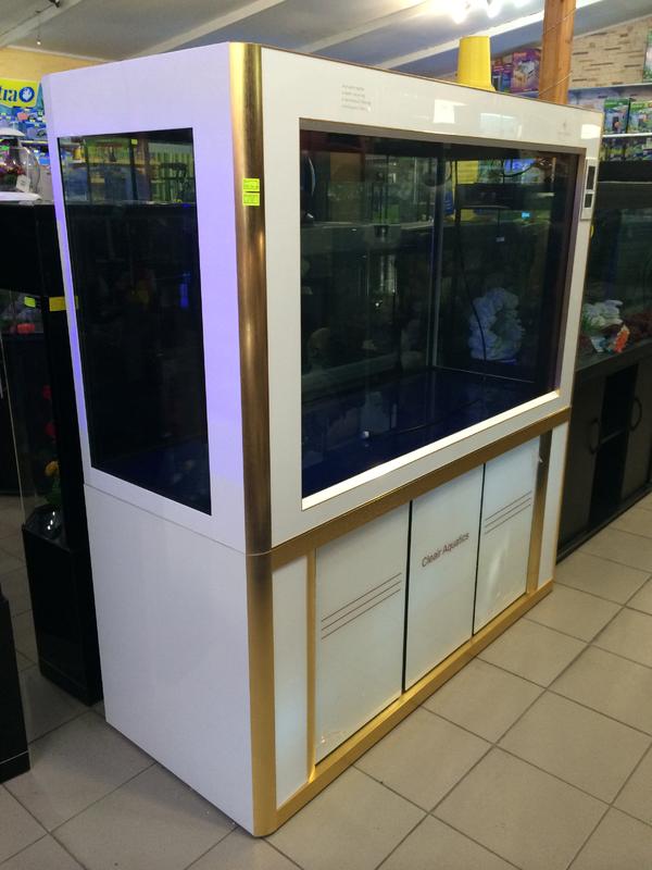 Вчера заехал в магазин где уже стал постоянным клиентом после покупки аквариума))) и вот что увидел у них,та же фирма что и у меня,только другая модель и размер 1500,не помню правда стоимость но смотрится ниче так,правда золотые вставки из алюминия на любителя.