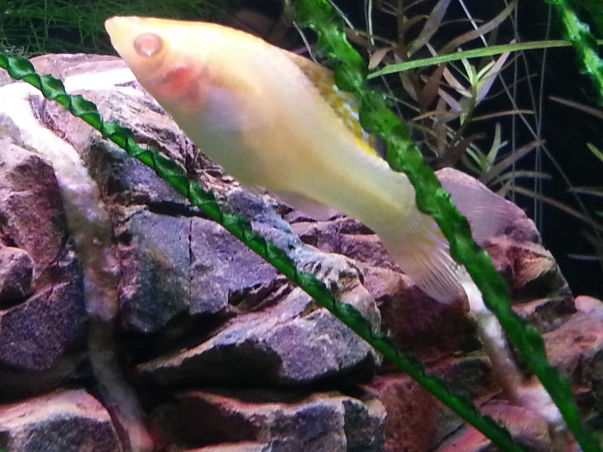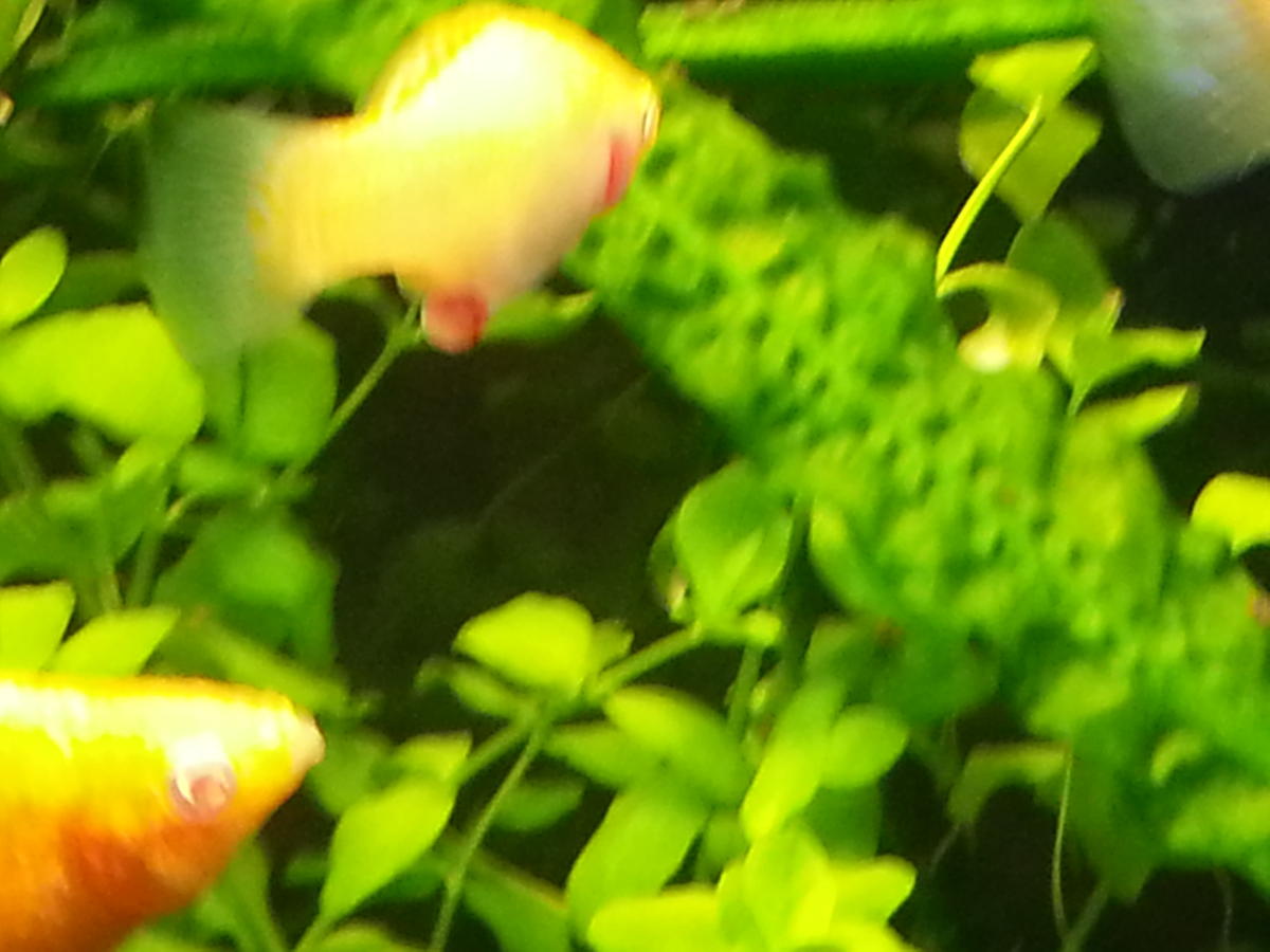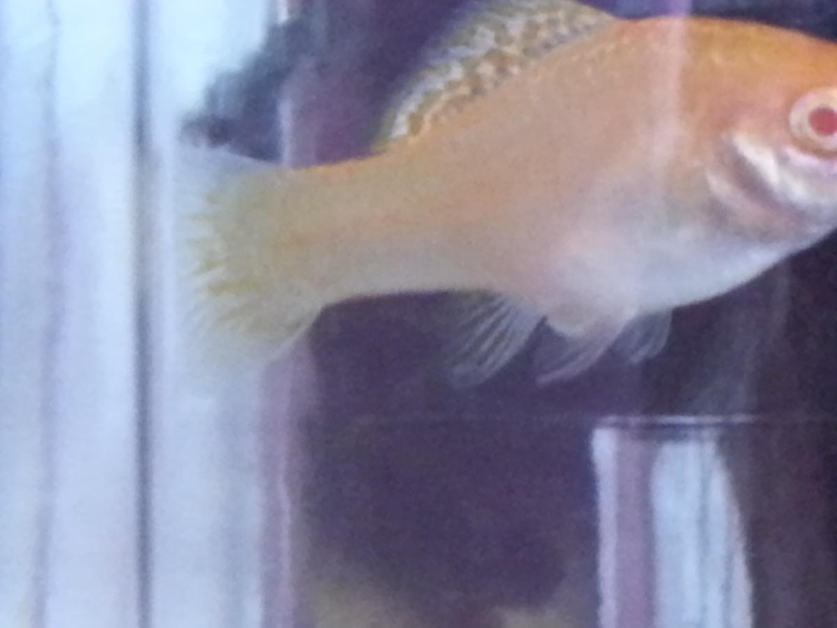THERA130, помогайте! Сегодня отнерестилась самочка, что на фото. Но опять случилось непонятное для меня. Она похудела, но у нее висят две икринки, довольно крупные. Фото, как смогла сделала! За ней гоняются самцы. Как ей помочь? Может отсадить?