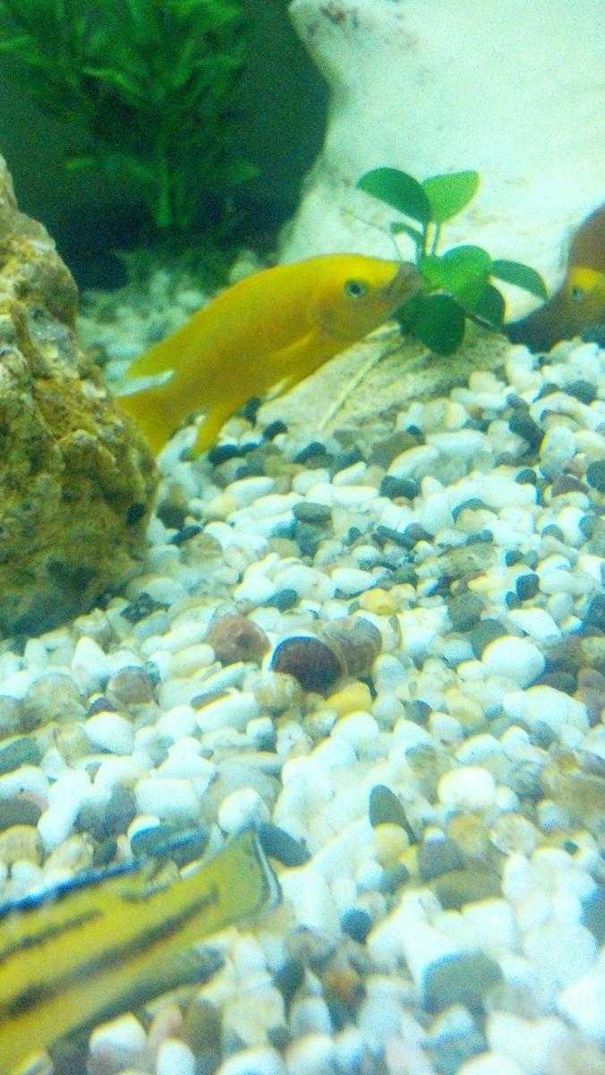 Банка (переднє гнуте скло, Польща) 1,0*0,5*0,4 м, неони сині - 5, водорослеїд - 2, анциструс - 2, лабео - 1, даніо - 4, червоноголові тетри -6, боція 2 види по 1 шт. (знищили всіх катушок)!, вже є рамірезі - 6, Labidochromis caeruleus "Yellow" - 2 дорослих + 2 мальки :)