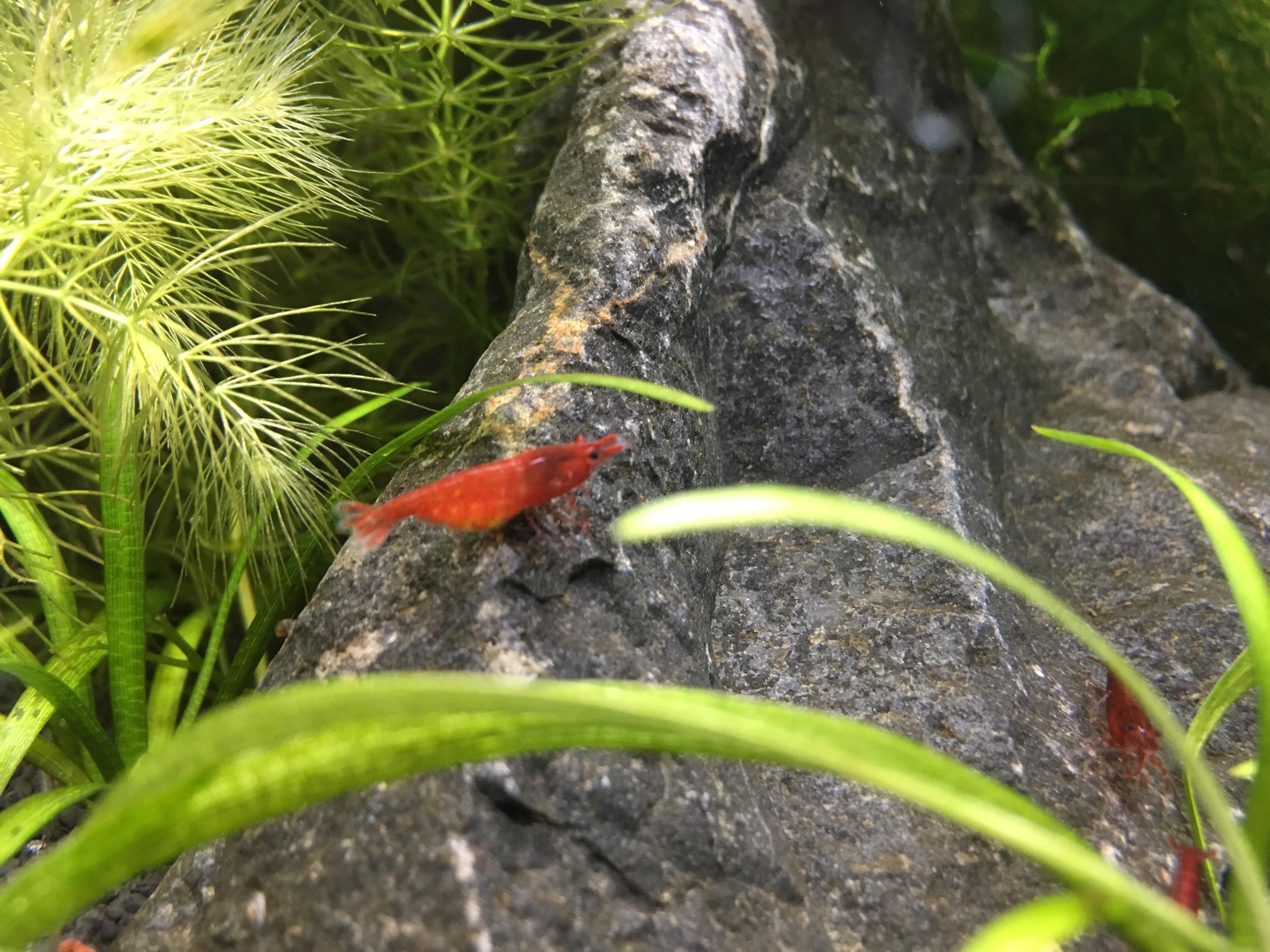 Есть конечно специализированные корма для креветок, но по практике вижу, что можно обходится и без них. Малышня вырастает быстро и начинает мешать кровь. Используйте любой корм для цвета + не будет лишним посадить что-то красного оттенка. Помните фразу? - Мы то, что мы едим. - это креветкам очень подходит. По крайней мере, я заметил по своим аквасам, где растет людвигия супер ред, там в разы меньше отбраковки, даже если не использовать корма усиливающие пигмент. Хотя, может это только так мне кажется...