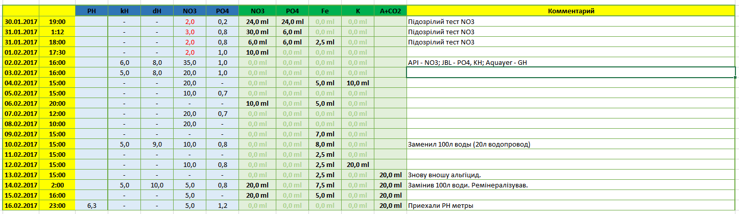 3. Нитраты добавлял после последней замены поскольку показал тест цвет 5 мг/л