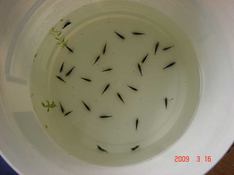 Первая поставка этих креветок была из Германии (АГ), проездом через Москву в середине декабря 2008 г. Тогда я заказал десяток. Приехали все живые, но через несколько дней я одну потерял. Просто утром нашёл труп.   Остальные 9 благополучно плавали месяца 2. Одним холодным февральским утром я заглянул в банку и был шокирован: креветки носятся по аквариуму, а некоторые уже лежат на боку. Мало того, одна из завалившихся на бок - с икрой, которой ещё вчера не было! Времени на анализ происшедшего не было, я выловил всех, кто ещё подавал признаки жизни и отнёс в разводню, где сразу поместил их прямо в сачке в одну из стабильных банок. Следующие 2 дня были самыми тяжёлыми - отлов трупов, включая беременную самку.  В конце концов у меня остались 3 штуки. и вот тут наступил момент принятия решения. Что делать? Успокоиться и просто любоваться красотой? Или же пополнять популяцию? Поскольку в АГ их на тот момент не было, решил обратится к акулам украинской аквариумистики. Шереметьев (Игорь, спасибо Вам за участие!) порекомендовал мне обратиться к нашему немецкому соотечественнику ribkin brat (тоже Игорь) и даже любезно дал мне его № телефона. Игорь отнёсся к моей просьбе очень внимательно и обещал помочь. Сомневаться в его порядочности и ответственности у меня не было причин, поскольку я помнил тему годичной давности, когда он отправлял нам коллективный заказ растений (растения - его основная специализация). Понимая, что помимо моих проблем у человека есть свои, мне оставалось только ждать. Хочу признаться, терпение - не моя сильная сторона, и я несколько раз надоедал таки Игорю.  Но он, видимо, прекрасно понимал, что охота - пуще неволи и был терпелив ко мне.  12 марта меня искали всем форумом.  В итоге я созвонился с Игорем и был приятон удивлён тем, что он отправляет мне креветок. Ради такого случая я решил лично поехать в столицу и встретить дорогих гостей. По дороге заехав в Полтаву на семинар, я поехал в Киев. Не буду рассказывать все приключения, скажу лишь что меня сильно выручил борисфен