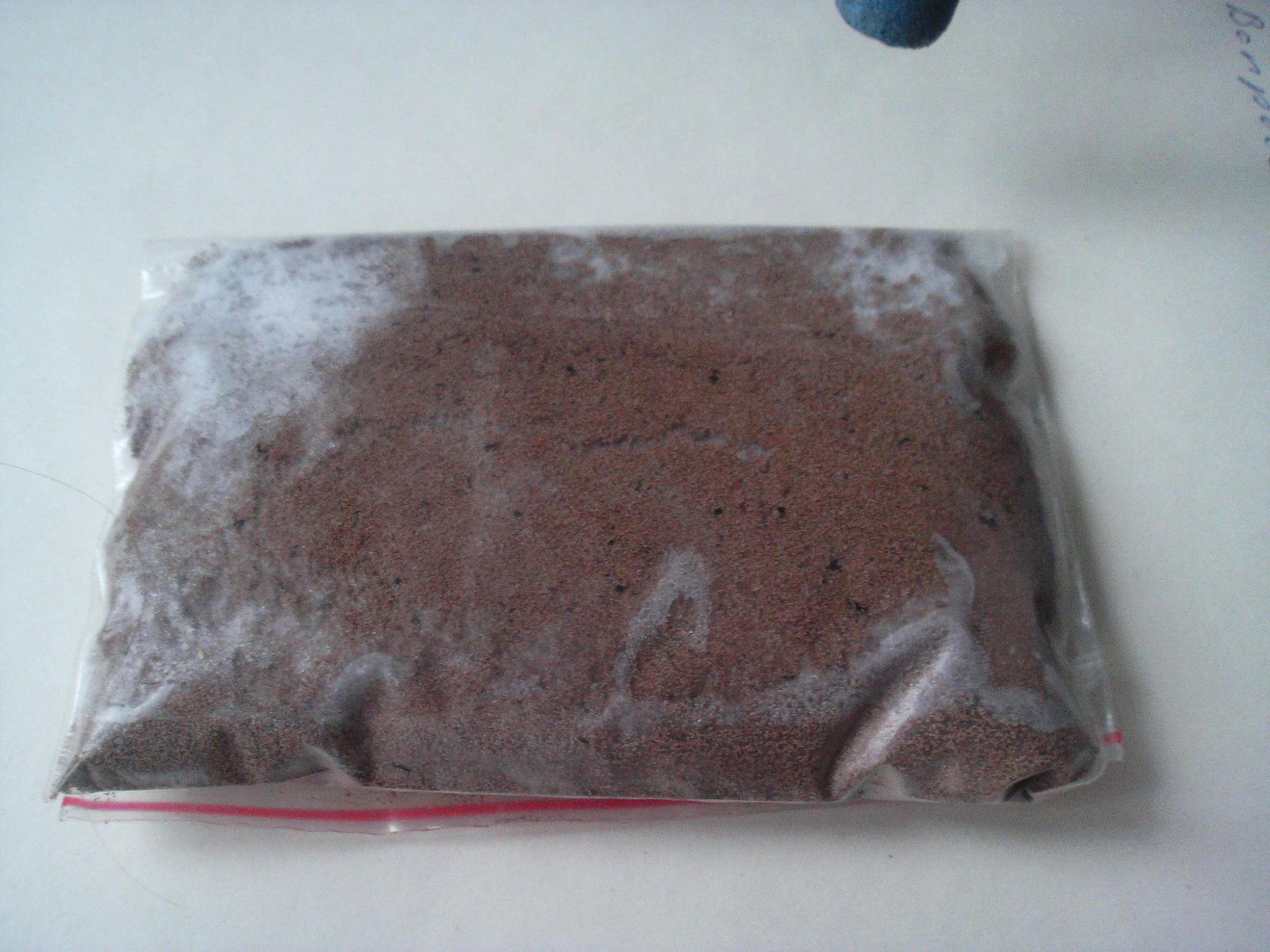 колбы заполняю водой до 1.8 лира и добавляю обычную поваренную соль - две столовые ложки на колбу. После того , как соль растворилась я вношу в первую колбу одну (1) столовую ложку замороженных яиц артемии(фото 3) , включаю в ней распылитель для перемешивания и ставлю под лампу 25 ватт. примерно через 36 часов начинается выклев артемии и в это же время начинает активно плыть и питаться малёк астронотуса в инкубаторе.поэтому к моменту когда он поплыл у меня уже есть готовый стартовый корм.