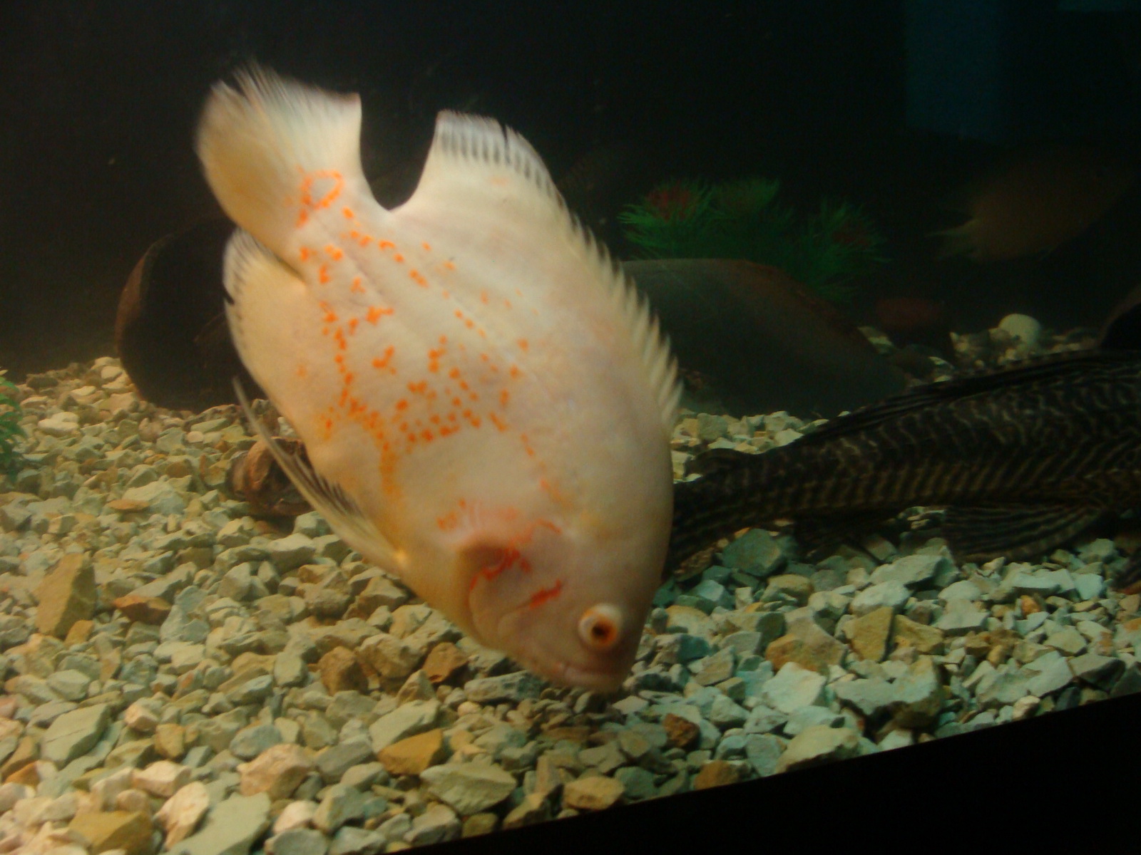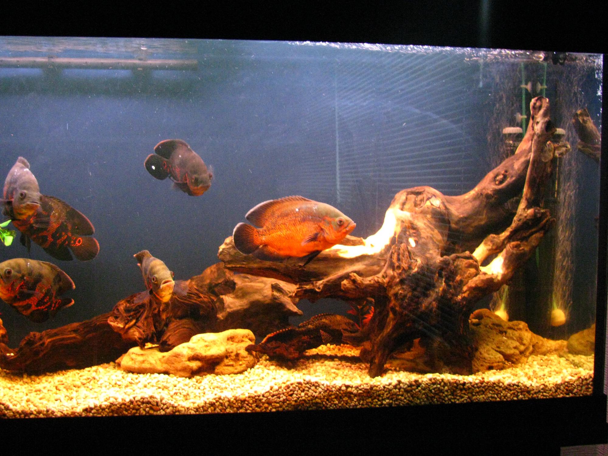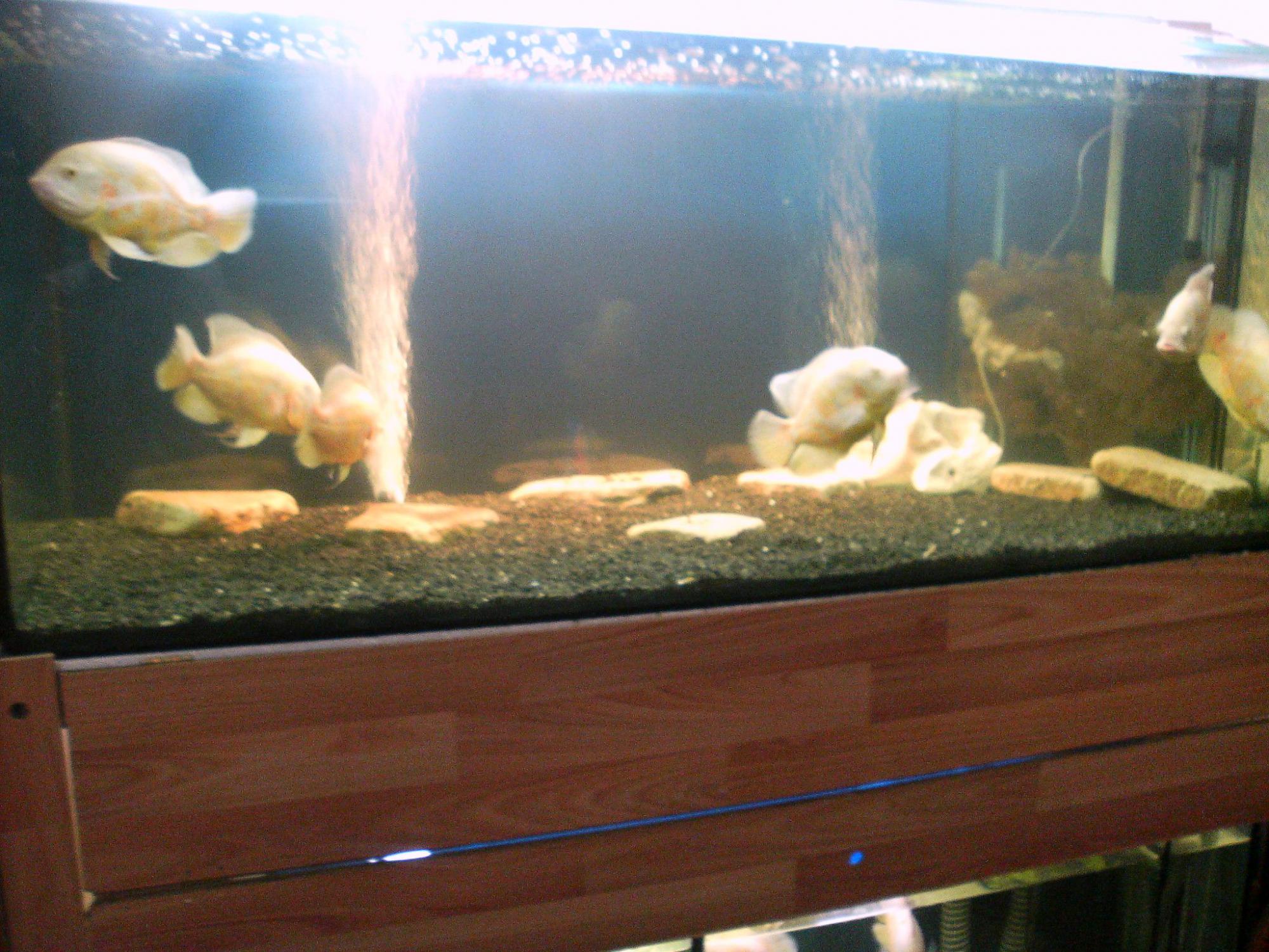 - население (оно же и перенаселение): 3 тигра, 3 кирпича, 4 альбиноса астрика и 2 Хромиса, 5 Восьмиполосых цихлазом, 2 Анцитруса, 1 Птерик, 1 сом усатый =), 1 Барбус, 4 улитки Ампулярии желтых больших.