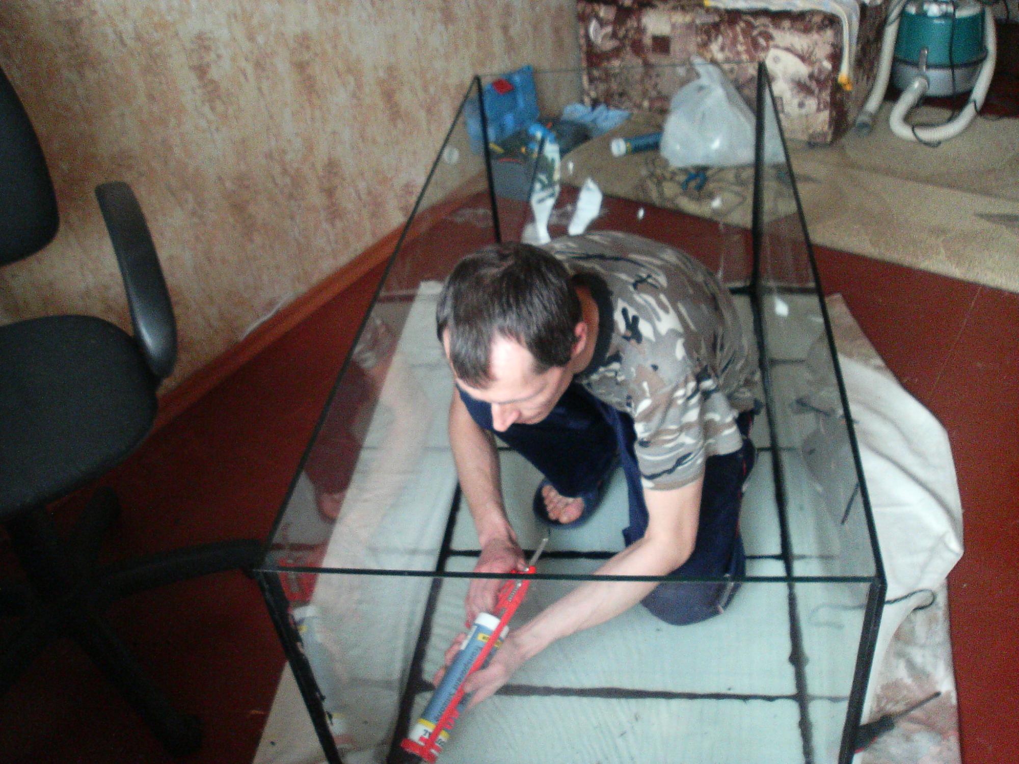 Заказал стёкла толщиной 8 мм на банку размерами 1450 на 600 на 550 миллиметров соответственно - длина ширина высота. Дно двойное.