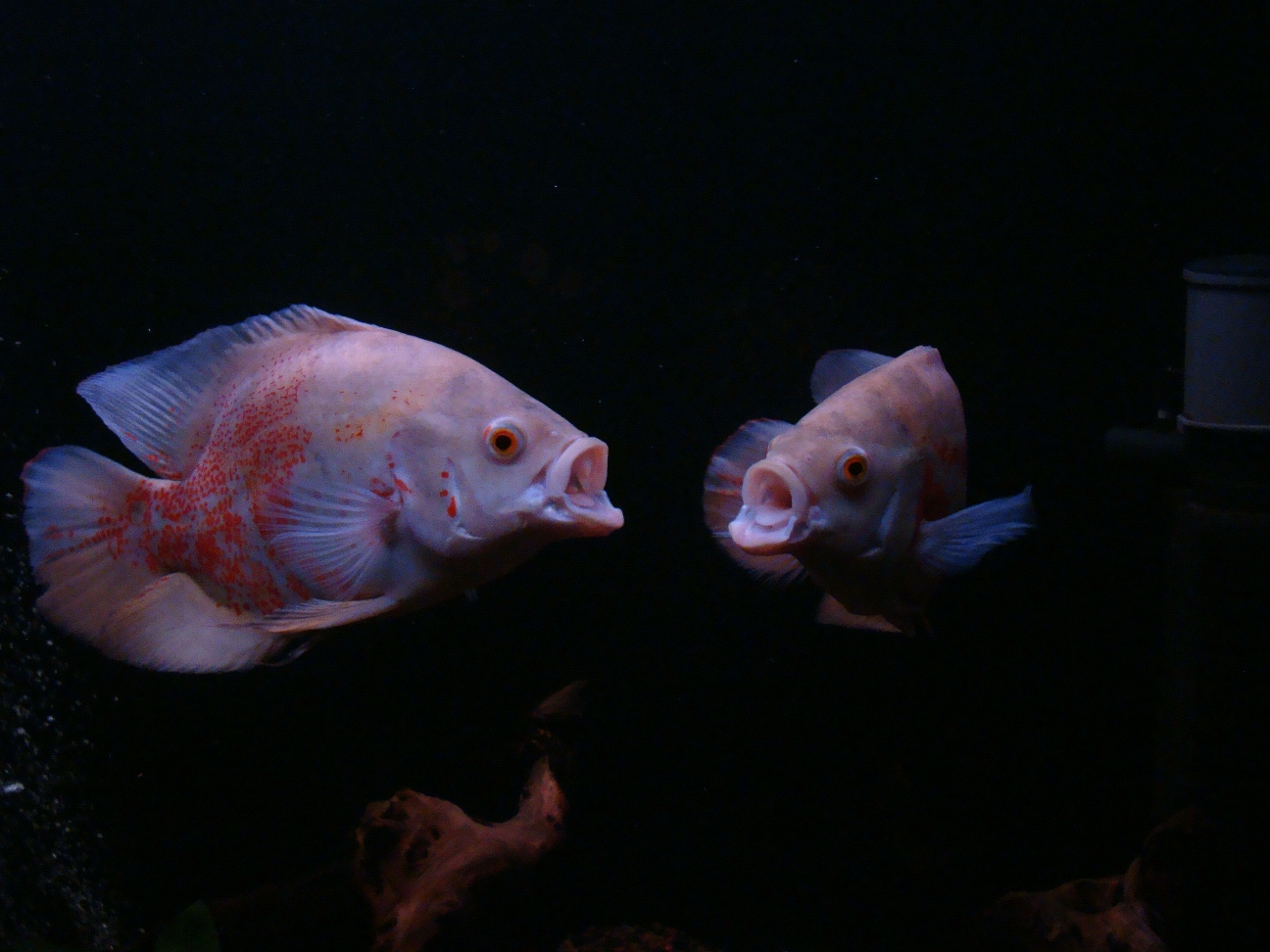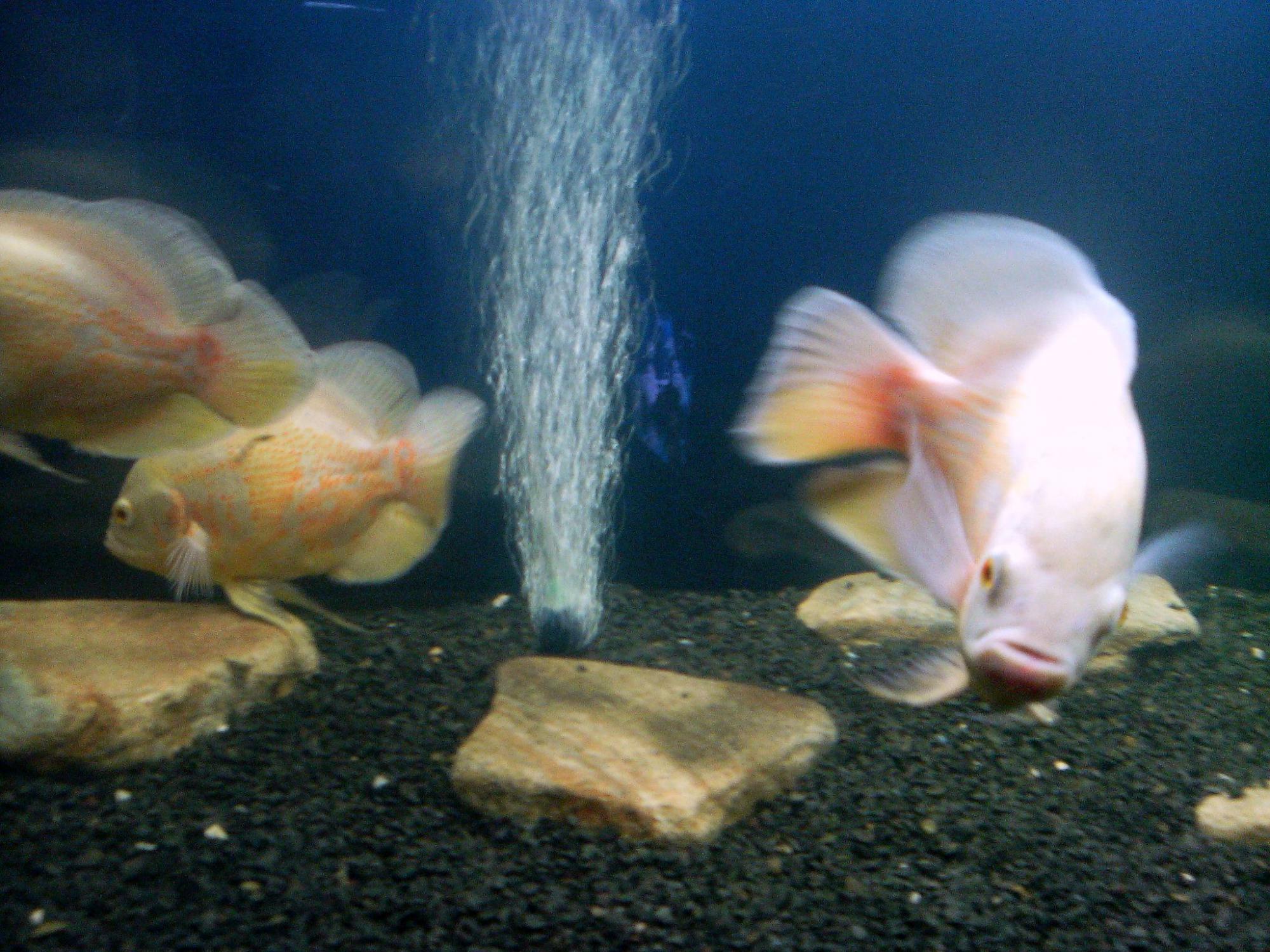 Частая и массированая подмена воды в первые месяцы жизни астронотуса - залог быстрого роста и крепкого малька. В первые недели воду для подмен желательно брать из аквариума с родителями.