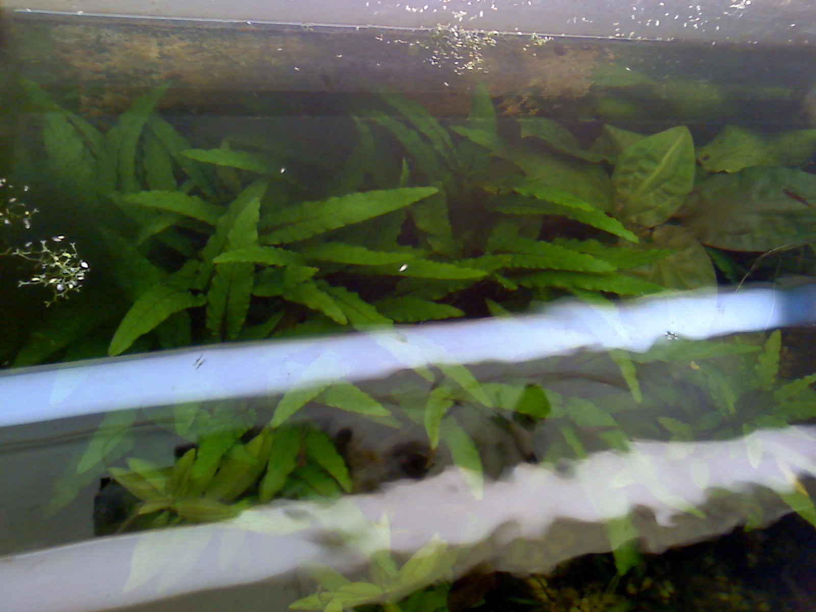 Вода меняется раз в месяц если по внимательней посмотрите то под банками увидите трубку водопровода,так что с подменой проблем нет.Фото с телефона.Травка прёт на ура без химии и СО2,по рыбам особо не загоняюсь есть барбусы,живородки,гурами всё х-во на самоокупаемости.И особо красотой заниматься не когда.Свет на таймере.
