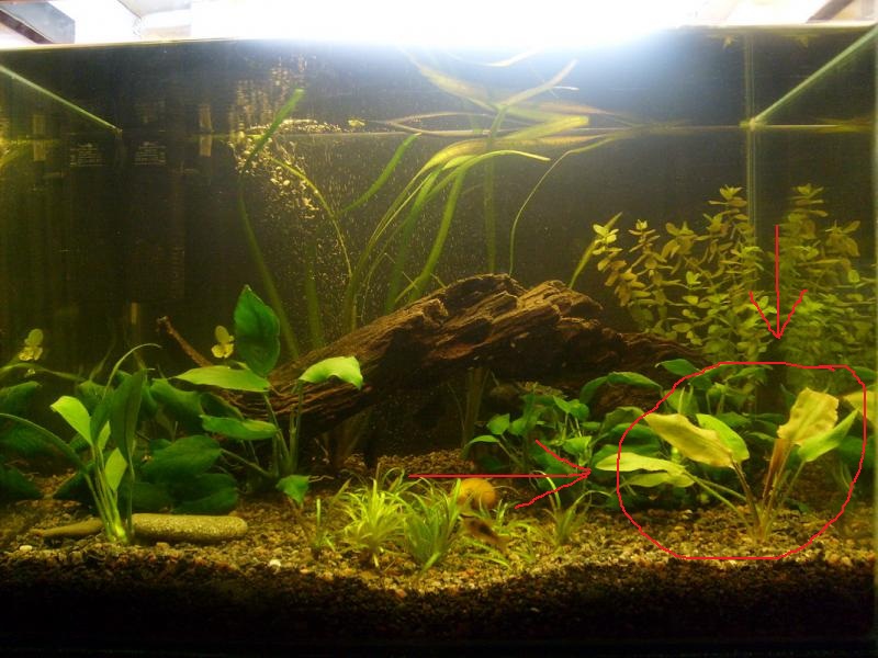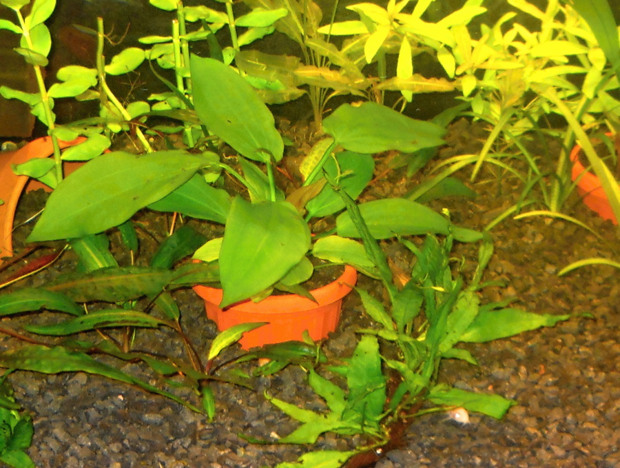 Вот как выглядит Echinodorus horizontalis (в горшке в центре)