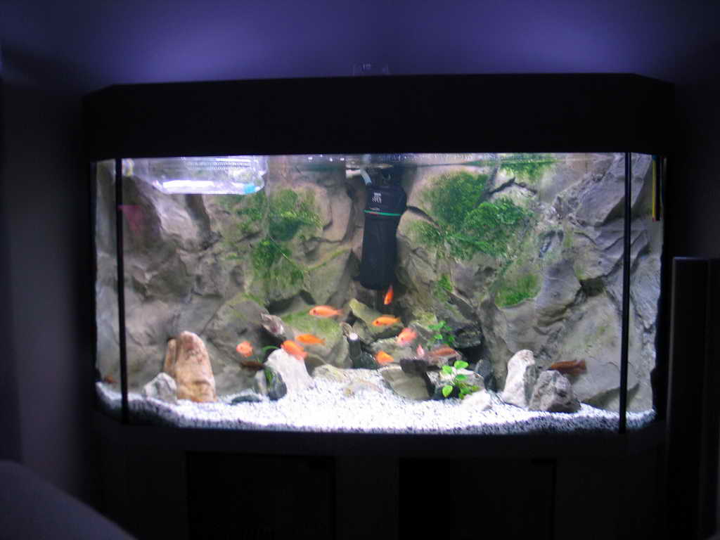 в ожидании выходных закралось у меня совмнение. Делать встроеный в фон фильтр или купить канистру... Канистра конечно хорошо и все такое - но дорого зараза. Как альтернатива - задекорировать внутренник, может даже заднюю полость приспособить как емкость под био фильтр, биоячейку. Но опять же - теряем в объеме акваса.