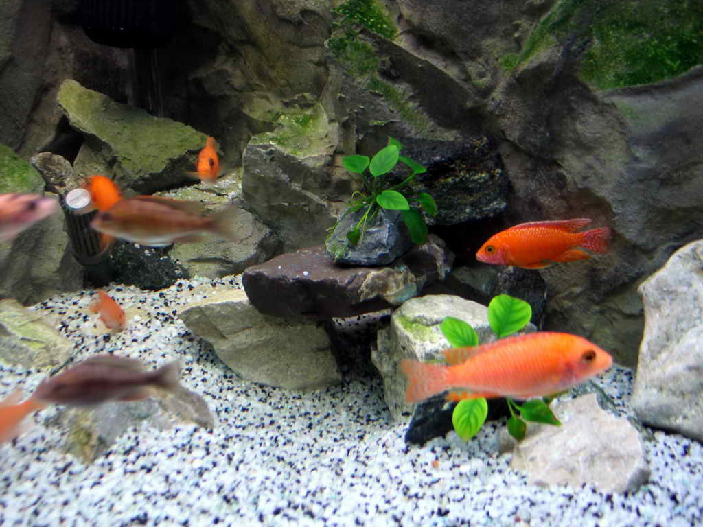 спасибо за оценку! аквалого именно из этого материала делает свои искуственные природные рельефы. я немного опустил подробности в статье. при смешивании компонентов я стараясь сэкономить Бутакрил-М добавил полистирольной стружки, благо ее было немерено, как отходов от производства тумб и светильников для банок. она растворилась и увеличила срок застывания пластмассы на целые сутки и не дала вспениться бутакрилу. мне показалось, что пластмасса вспенивается при нагревании поверхности феном и при определенной пропорции компонентов. не следует добавлять полистирол, это было моей ошибкой. сама пластмасса застывает в зависимости от температуры окруж. среды быстро. в статье по ссылкам можно найти инструкции по применению и технологии, адреса производителей и продавцов. так вот я советую попробовать с минимального объема что-то изготовить, чтобы приноровиться к материалу и технологии. реально можно просто что-то вылепить. я же заливал, не дожидаясь отверждения, но у меня была смесь с полистиролом. поведение пластмассы немного иное, так как застывает значительно быстрее. красил прямо из баллонов предварительно хорошо встряхнув баллоны. переходы цветов получались сами собой при наложении красок друг на друга. цвета можно подобрать по цветовой таблице (основные, дополнительные и пр., про это в инете полно статей). я хочу к лету еще одну банку сотворить для малави 160 х 50 х 60 с 3D-фоном, небольшим сампом в банке для механики и пред.биологии и встроенным в светильник влажно-сухим фитофильтром . компоновку всей системы уже продумал, осталось изготовить. так вот фон решил изготовить в форме из мелкого песка, предварительно придав ему желаемую рельефность, так как самп будет только в верхней части банки на задней стенке, не уменьшая собой площадь дна так необходимую цихлидам смешанного скально-песчаного биотопа. поеду в жаркий день на речку и на берегу буду ваять фон. :-))) попробую прямо в песок, думаю, что получится поверхность и фактура песчаника, так как тонкий слой песка застынет в пластмассе и красить не нужно. только цветовую палитру песка подобрать под задумку. попробуйте так, может раньше меня приличный результат получите, я не думаю, что Вам при изготовлении камней нужны такие большие поверхности как мне. я думаю, что можно и в ведре с песком отформовать полые камни из бутакрила небольшого размера. в любом случае мне очень интересно будет узнать о результатах Ваших опытов. если есть еще вопросы – отвечу!