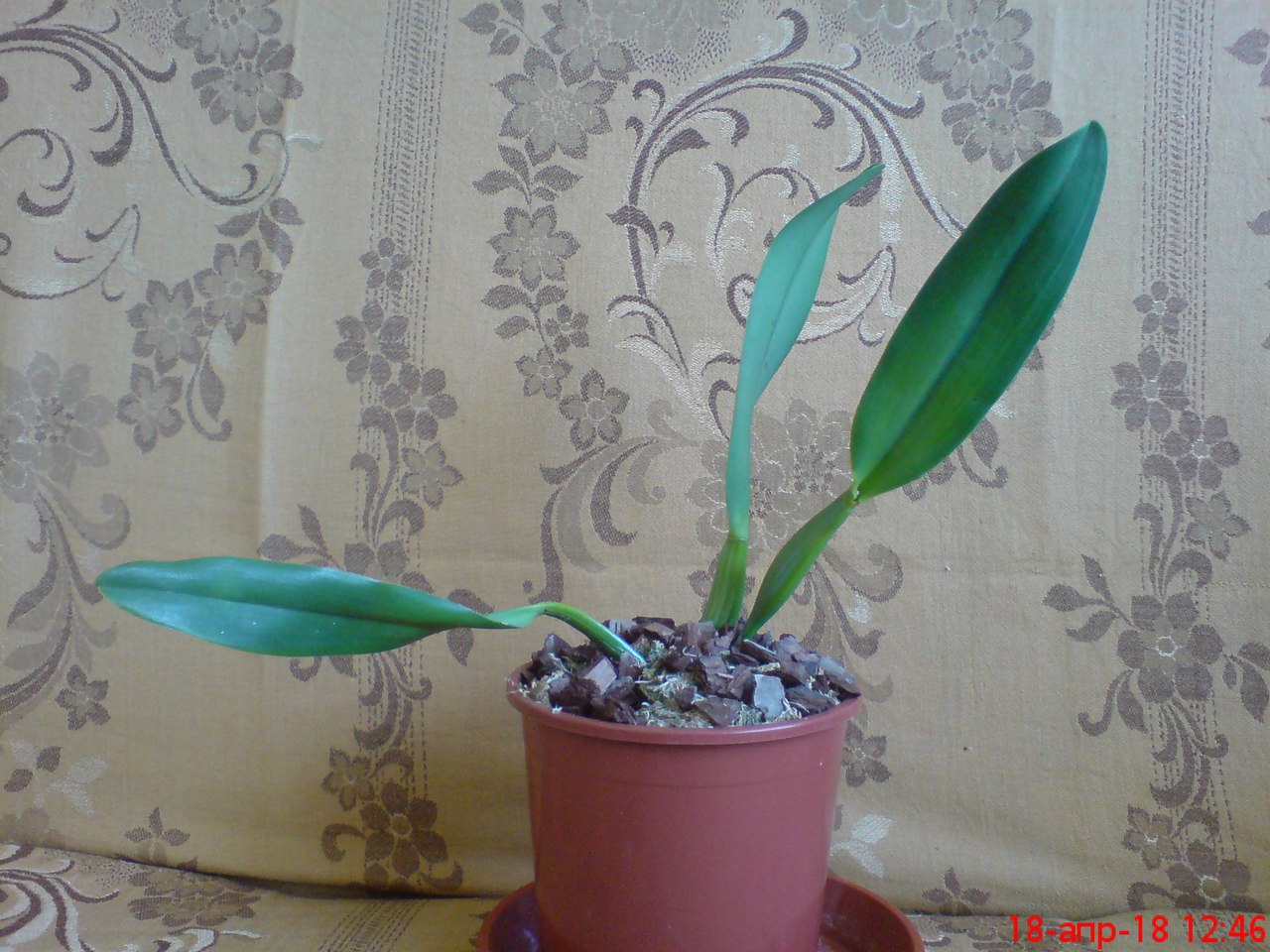 Напомню как я посадил каттлею .Rhyncholaeliocattleya Liu's Joyance 'Leopard' (=Rhyncholaeliocattleya Chunyeah x Rhyncholaeliocattleya Tainan Gold) одной бульбой. на фото ниже посадка , сразу пошел новый рост. дальше фото в течении роста каждой бульбы. к чему это... все выше
