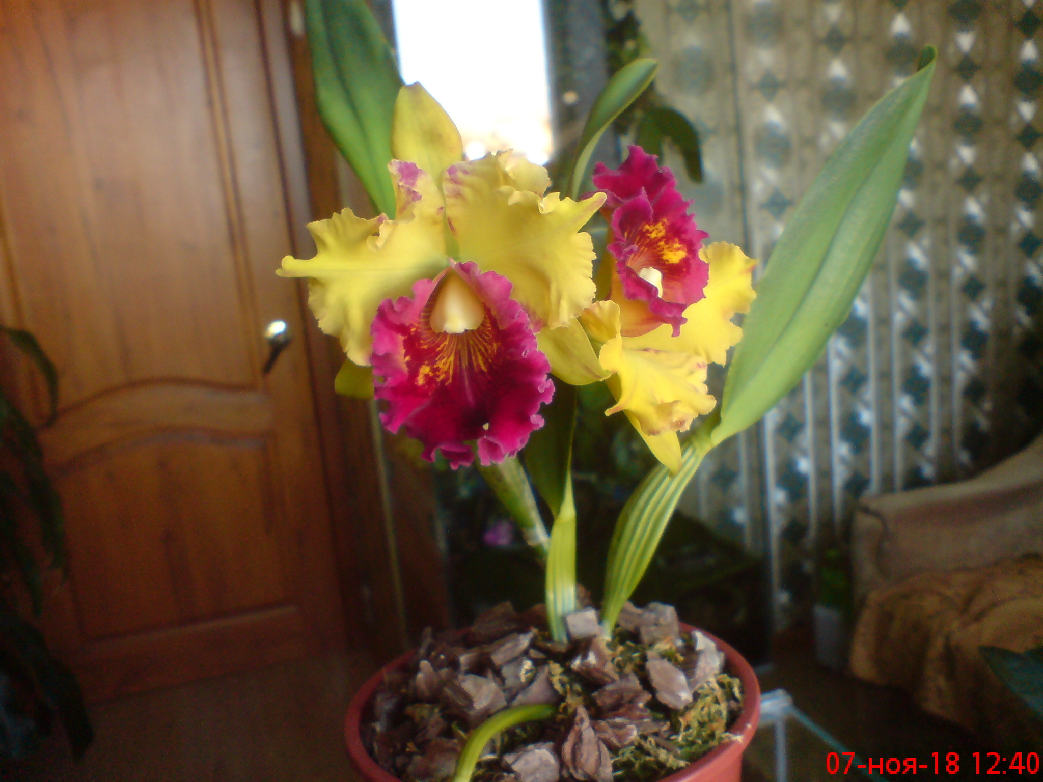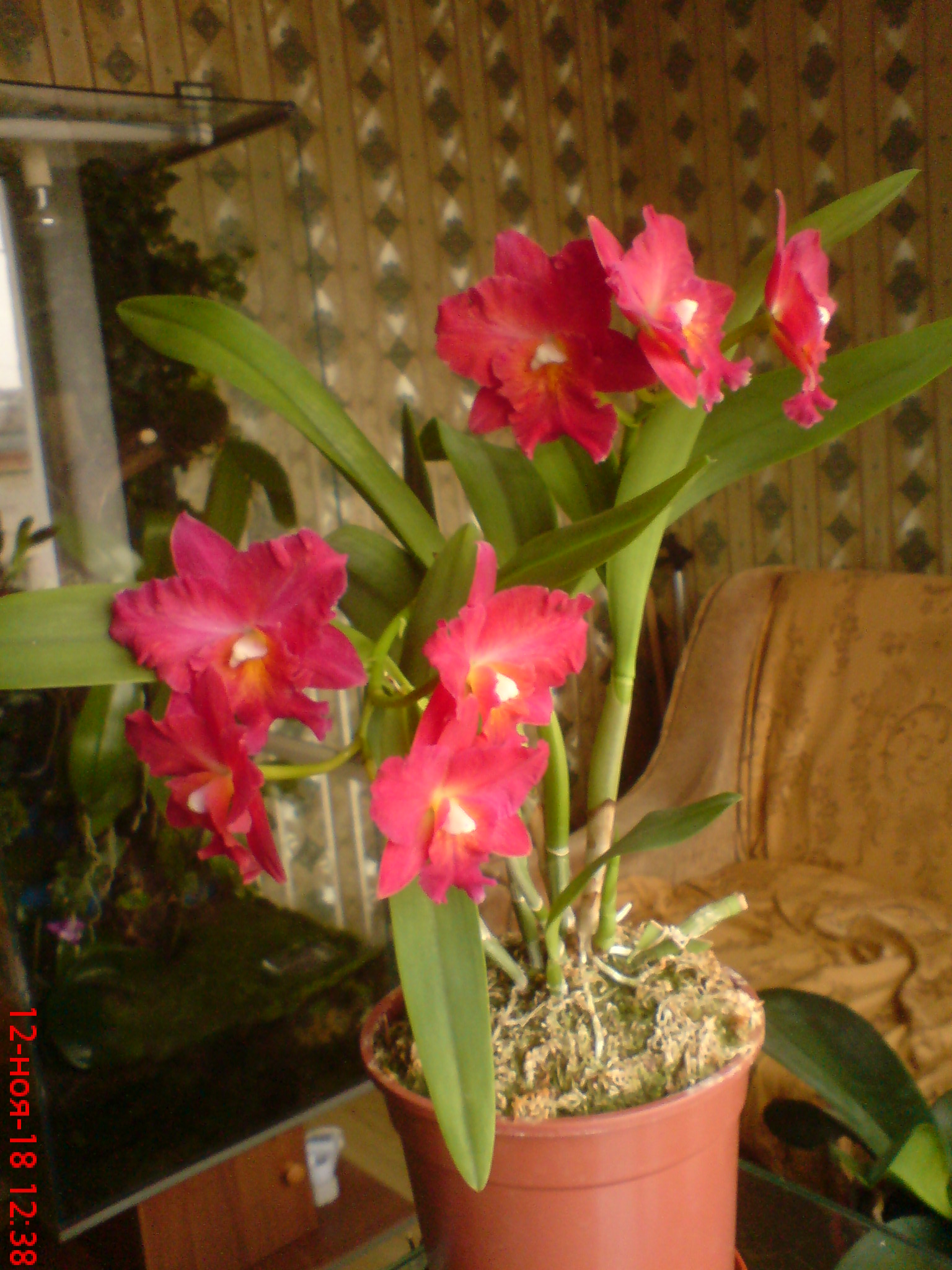 распустила все 7 бутонов полностью моя вторая красная двулистая каттлея.