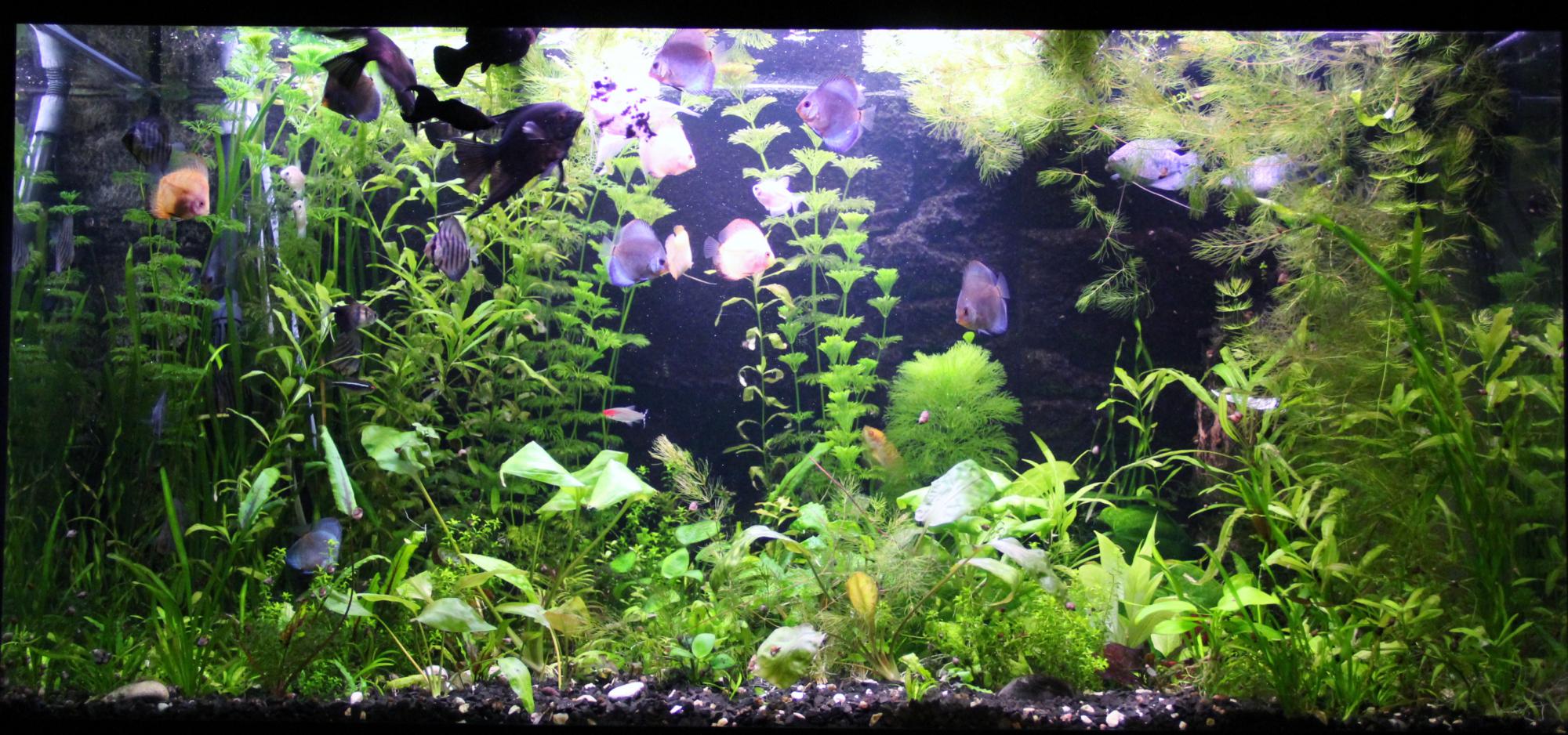 Запустил около месяца назад.Сегодня засадил как хотел растения. Удо-Глина; Свет 4хТ8х18Вт + экономка 9W,10-12 часов, подмена 20% 1 раз в неделю. Посмотрим что выйдет
