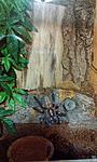 Хотел даже это дупло закрыть перегородкой, выгнав паука на стену. Но не хочу его стрессовать, в дупле ему наверно намного уютней. Из моих наблюдений паук очень трусливый- малейший шорох или стук, он моментально сматывается в свое логово. Даже сфотографировать его проблематично, ни свет яркий не включишь, ни тем более стекло не отодвинешь. Я с самого начала, как терр переоборудовал, то светодиодную подсветку красную установил- дешево и сердито получилось.