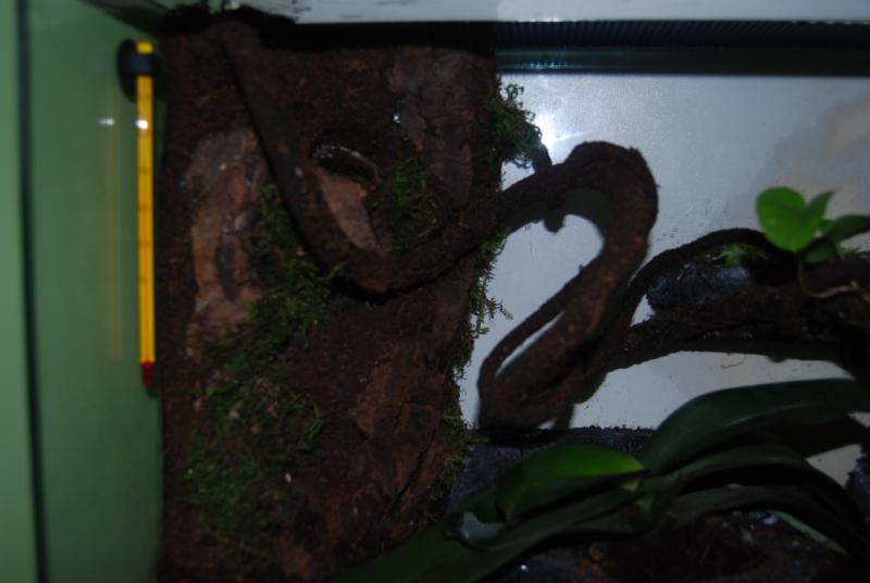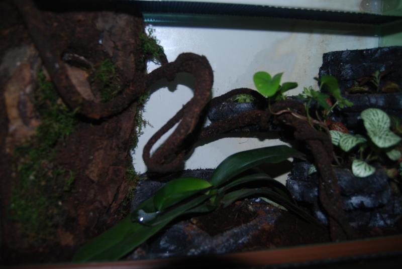 приветствую.насмотрелся на работы товарища RNKot и захотелось себе что то подобное создать.сначала склеил терр 500х300х200 ДхВхШ.вентиляцию делал проточного типа,двери сдвижные на мебельных Ш-планках.закупил все необходимые материалы и в бой.камни вырезал из пенополистерола,склеивал монтажной пеной.этими же материалами набирал нужную мне форму дерева.камни окрашивал акриловым герметиком с добавлением акриловой(черной)краски.лианы из веревки двух диаметров.вымазаны в черный силикон и обсыпана кокосовой стружкой.по такому же принципу обработана и пена на которую крепилась кора.растениями засаживала жена.
