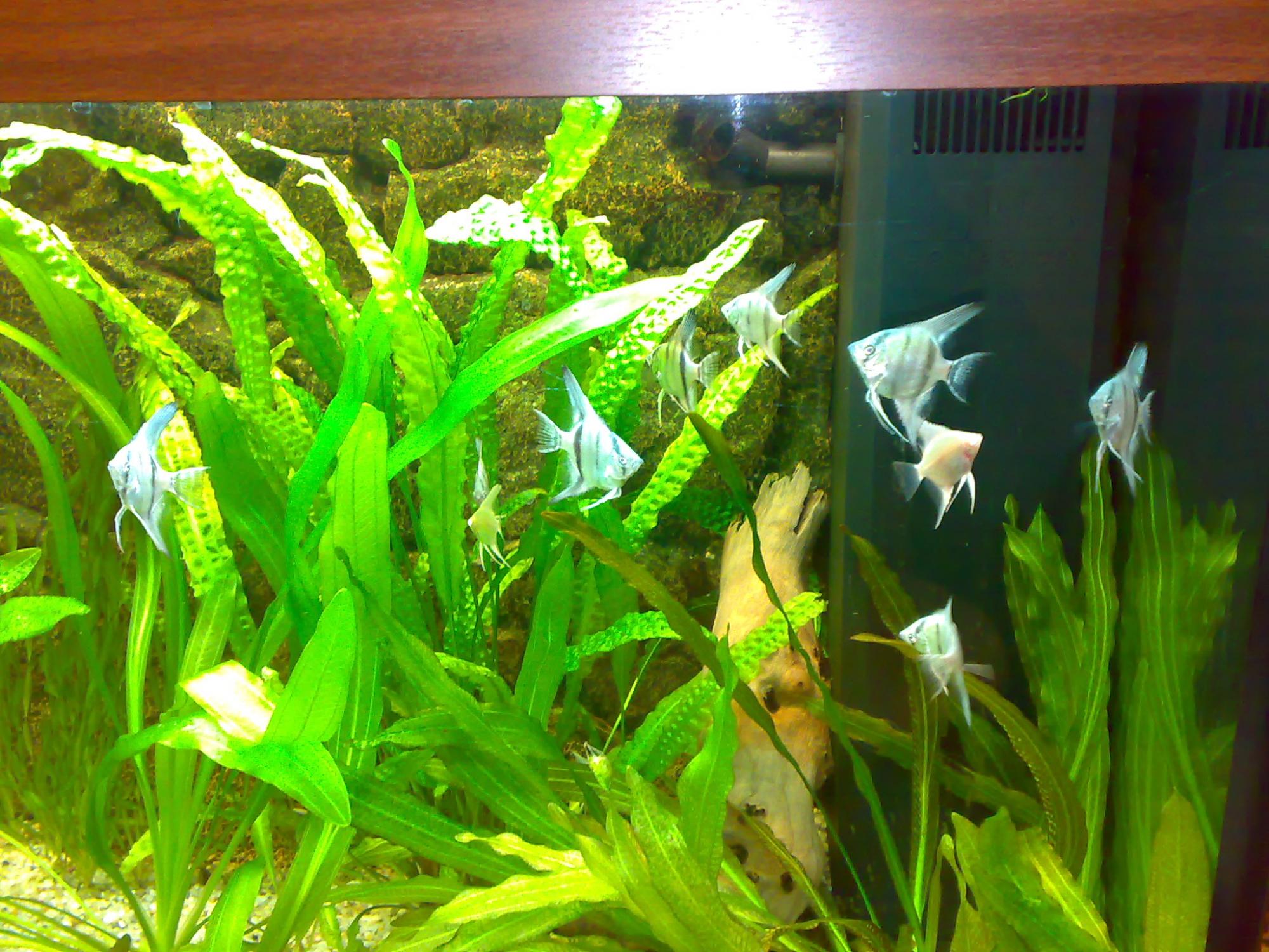 Прошло 1,5 мес. Скалярки почти выросли и начали делить территорию.