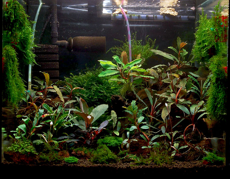 Собрал я наконец акву с обратным донником. Только что воду залил и включил помпу. Помпа на 500л/ч, включил на полную.