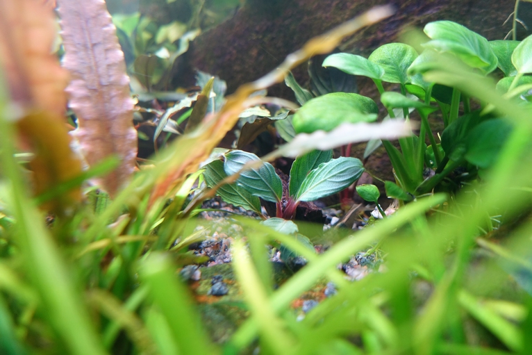 Есть такая проблемка. Есть два Ахилеса, растут в одной акве,один в тени другой под лампой. Так вот,тот который под лампой имеет более вытянутые листья и почти не видны жилки.А который в тени, яркий представитель своего вида.