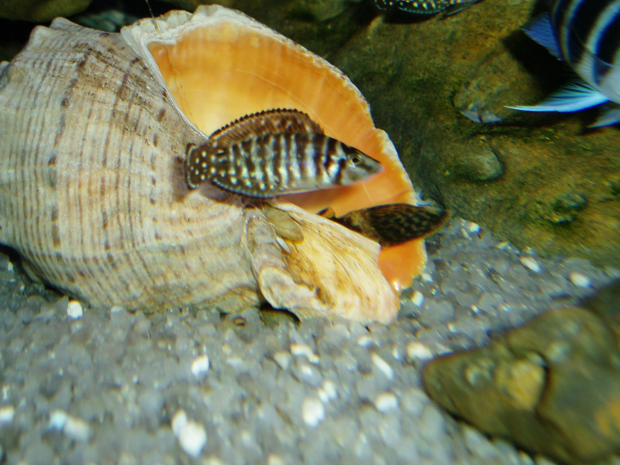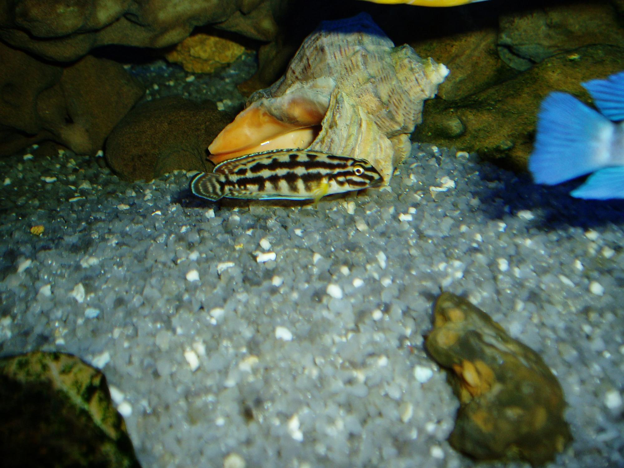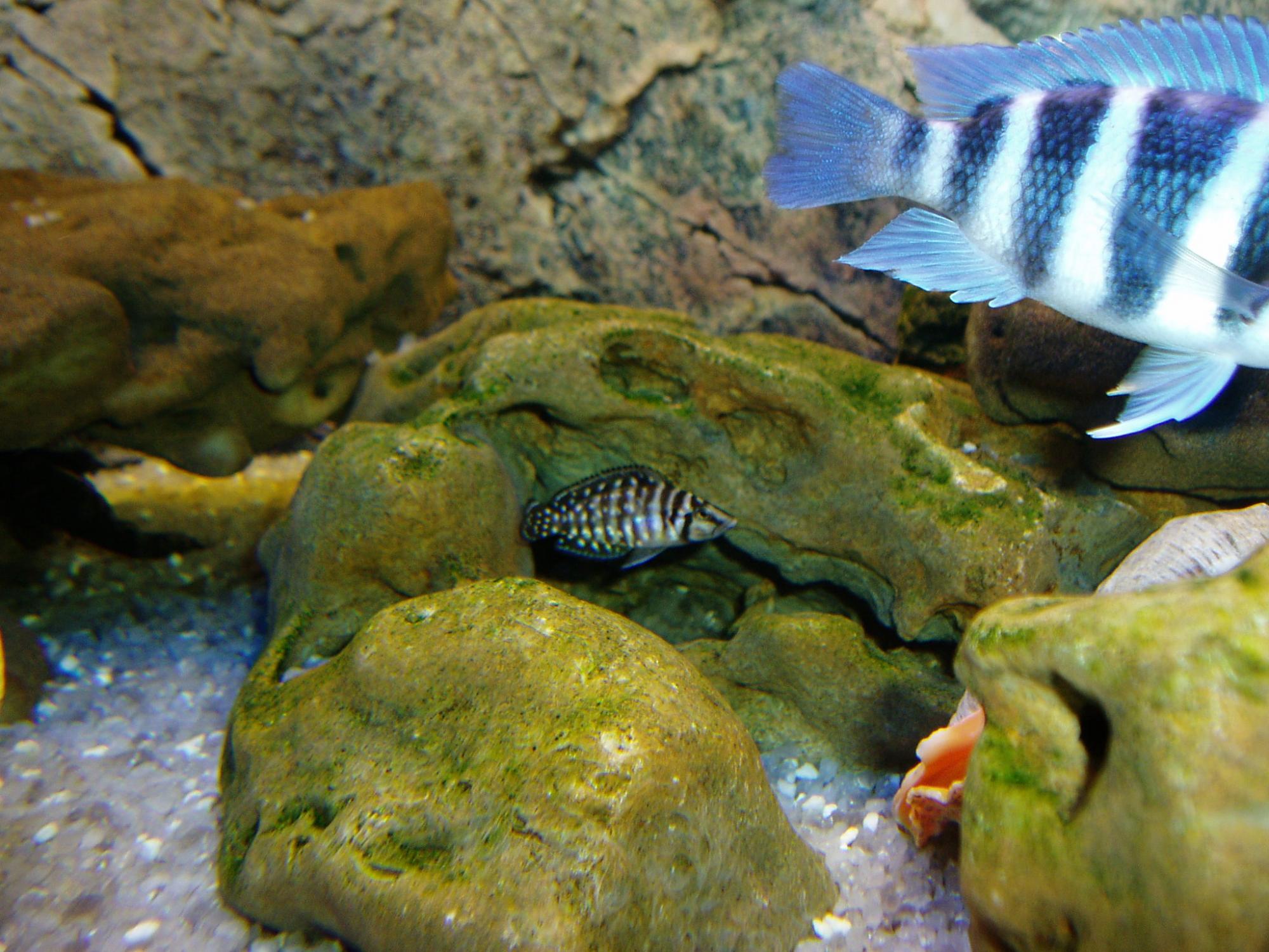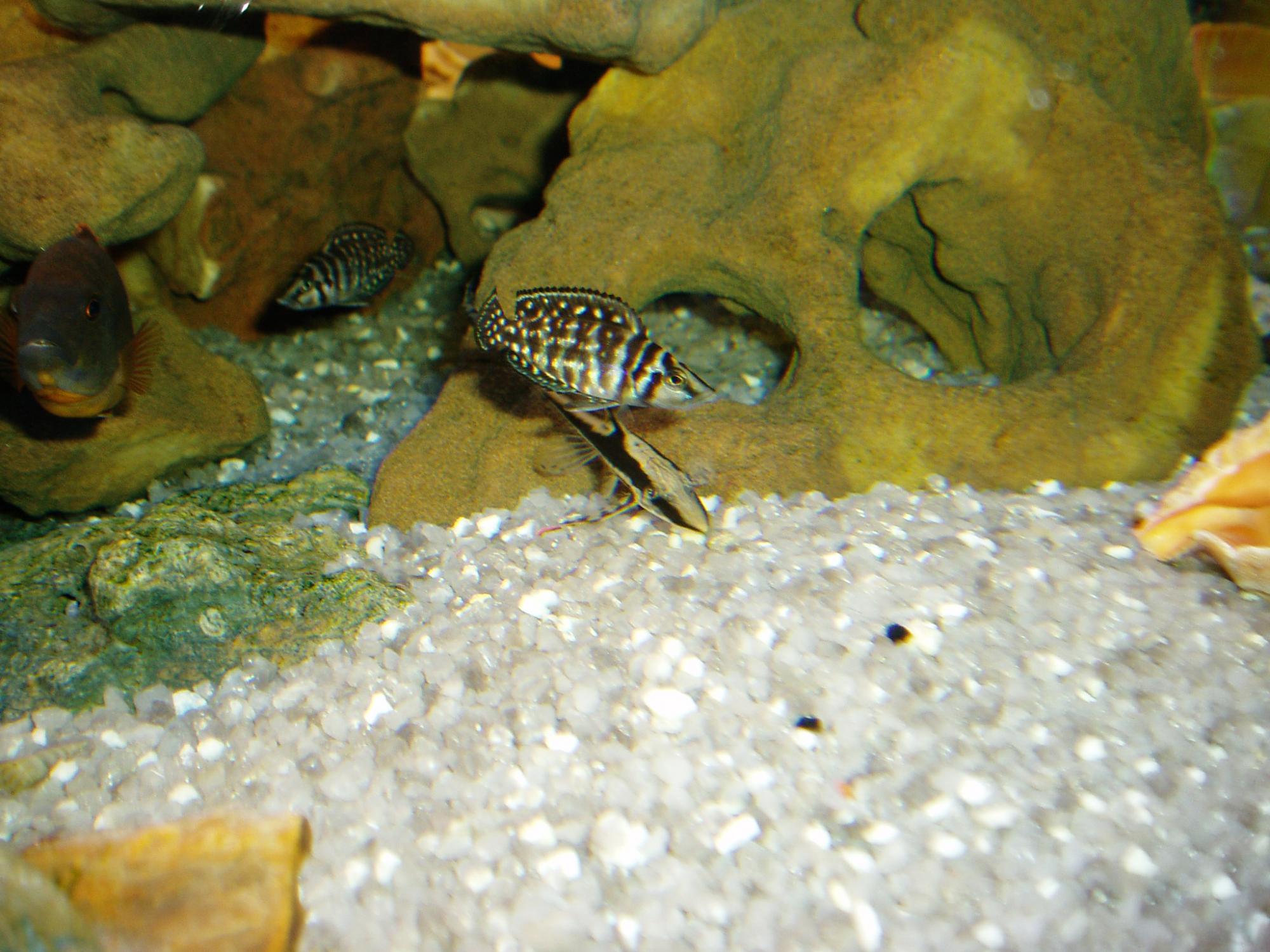 Благодаря Кресту, у фронтоз появились соседи. Это 5 мальков 3-4см. Altolamprologus calvus 'black pectoral'. Ждем Altolamprologus compressiceps 'gold'.