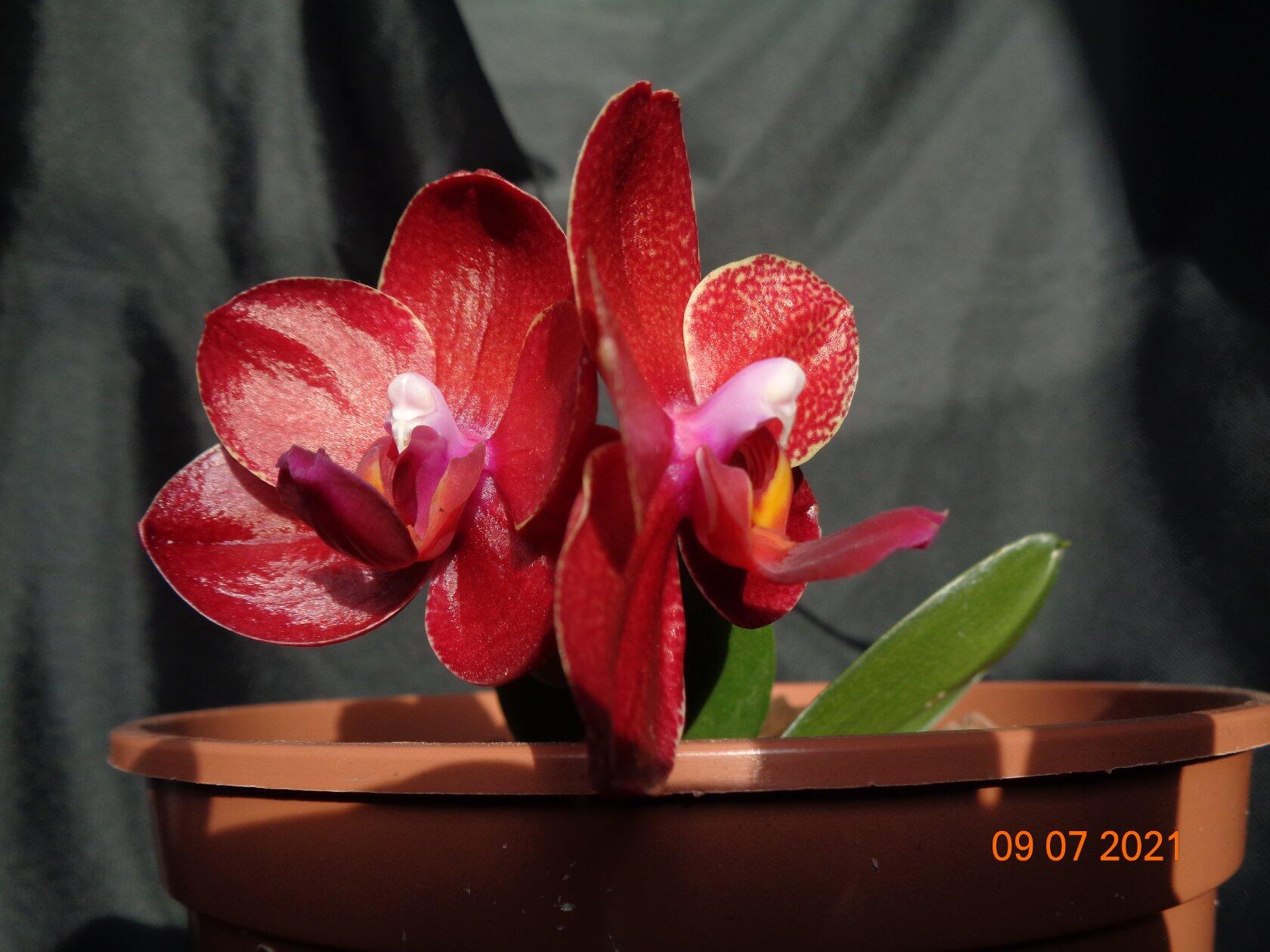 MO519 Phalaenopsis Mituo King ''Red Pepper '' (слева) мериклон от Миту значительно дороже чем тот что справа и Phalaenopsis Mituo King ''Red Pepper '' (справа) дешевое растение . Абсолютно идентичные растения.. ни чем не отличается цветение .