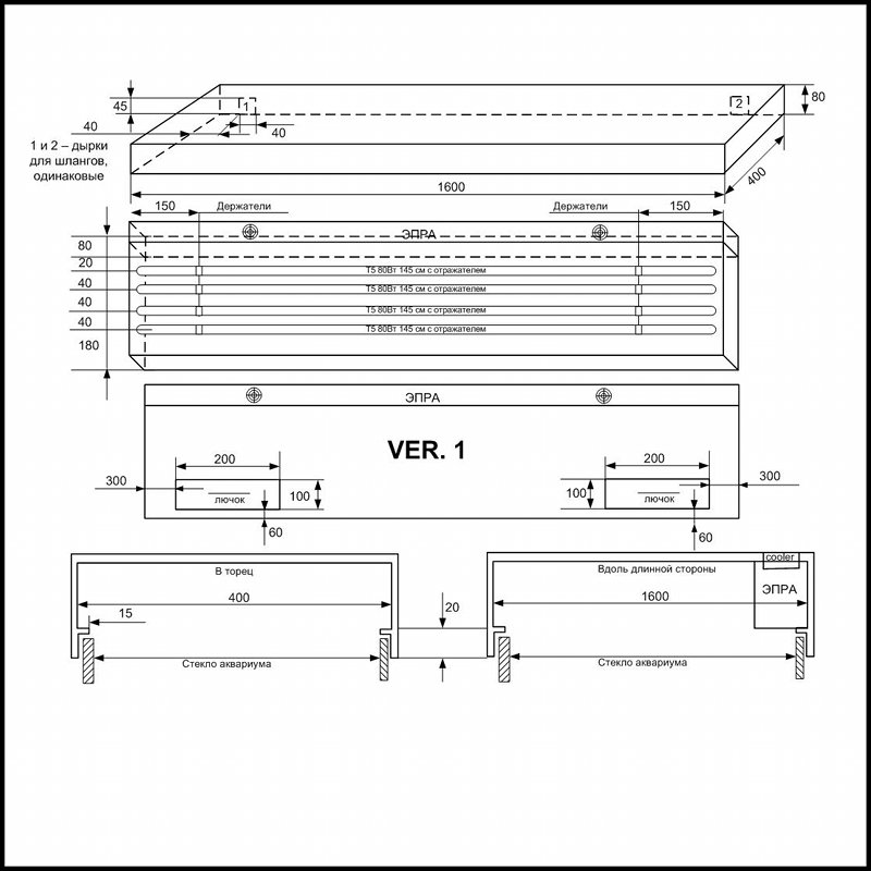Крышка 4 х 54 Вт Т5 + кулеры: