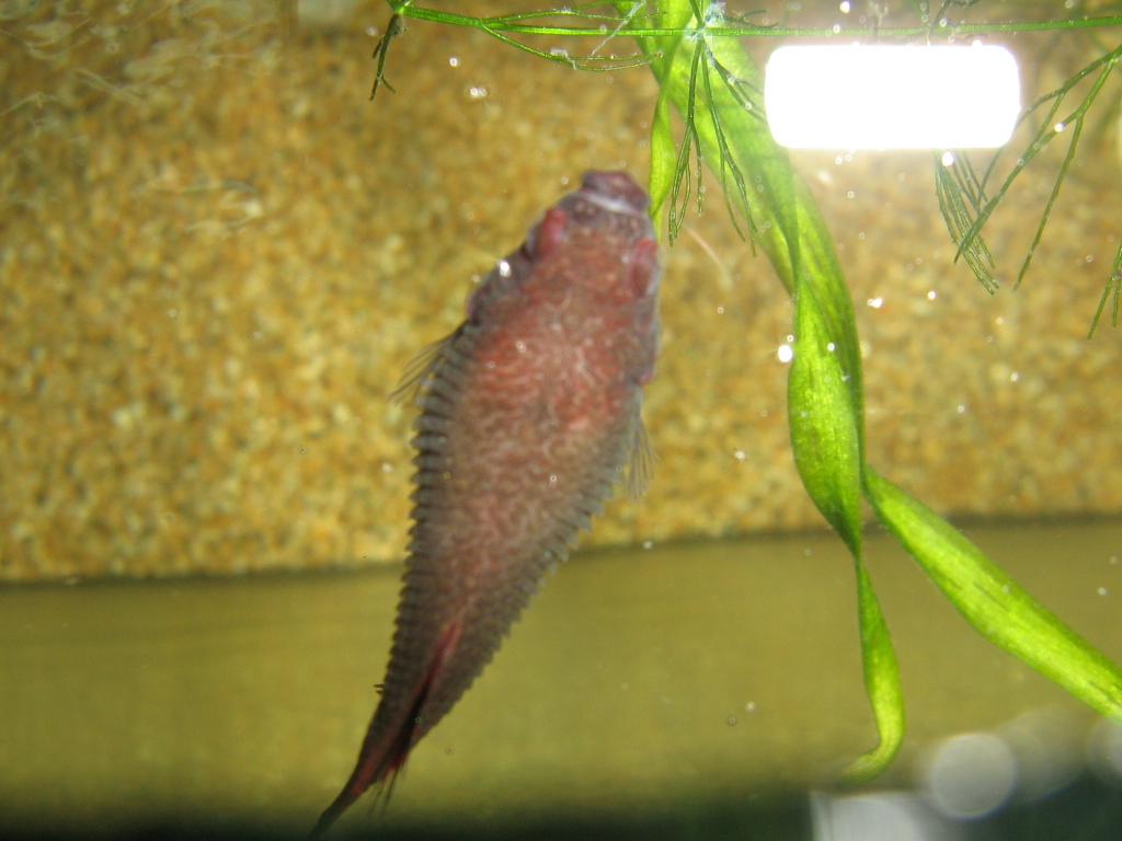 Щас вижу самку питушка, живот вздут, её тянет к верху, но самое важное что вся чешуя взъерошина, просто как ёж. По инету нашёл что это возможно бактерии... и вся рыба трёться об грунт, я походу получил полный букет...