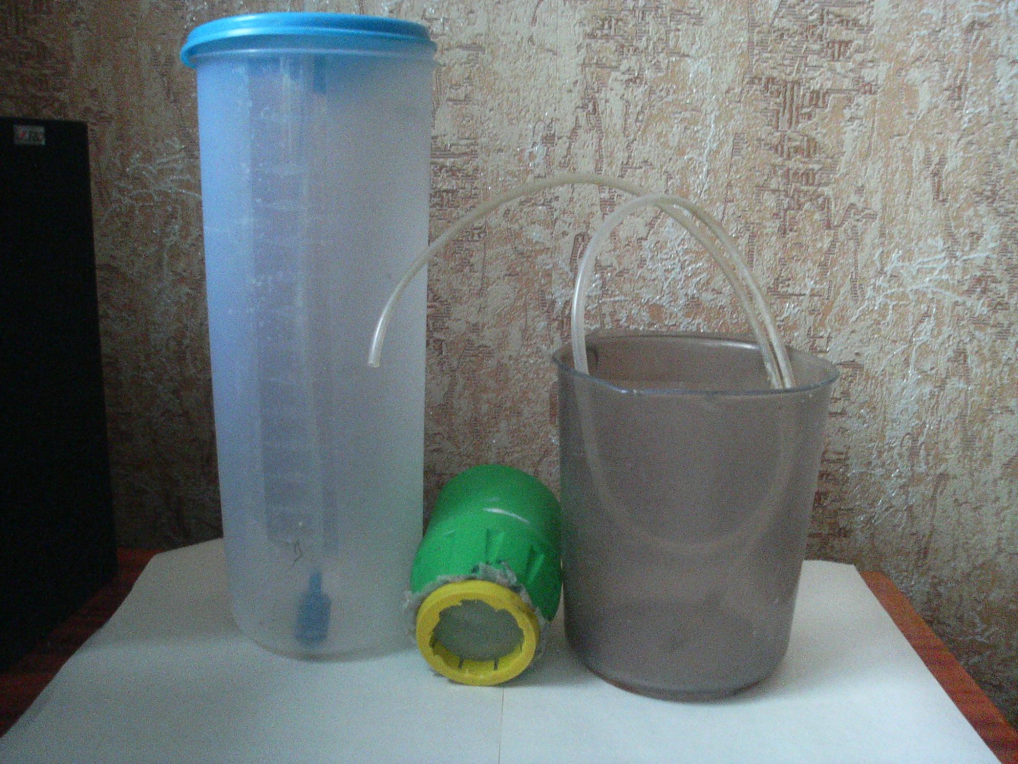 Для этого я использую две пластиковые колбы по два литра(фото 1 и 2) , с отверстиями в крышке для шланга с распылителем и выхода воздуха.