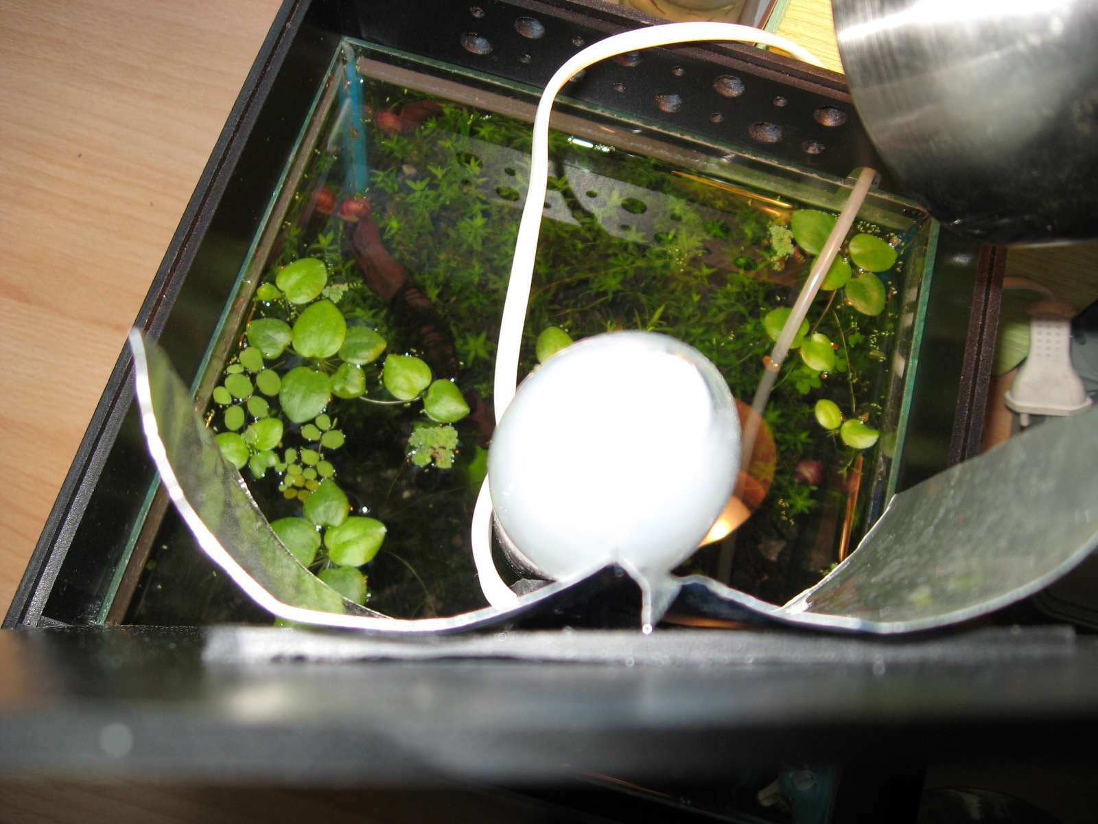 сделала крышку на 25 л. банку по этой схеме - уже почти год стоит - полет нормальный. очень удобно с такой крышкой обслуживать банку - и свет есть, и крышка не мешает.