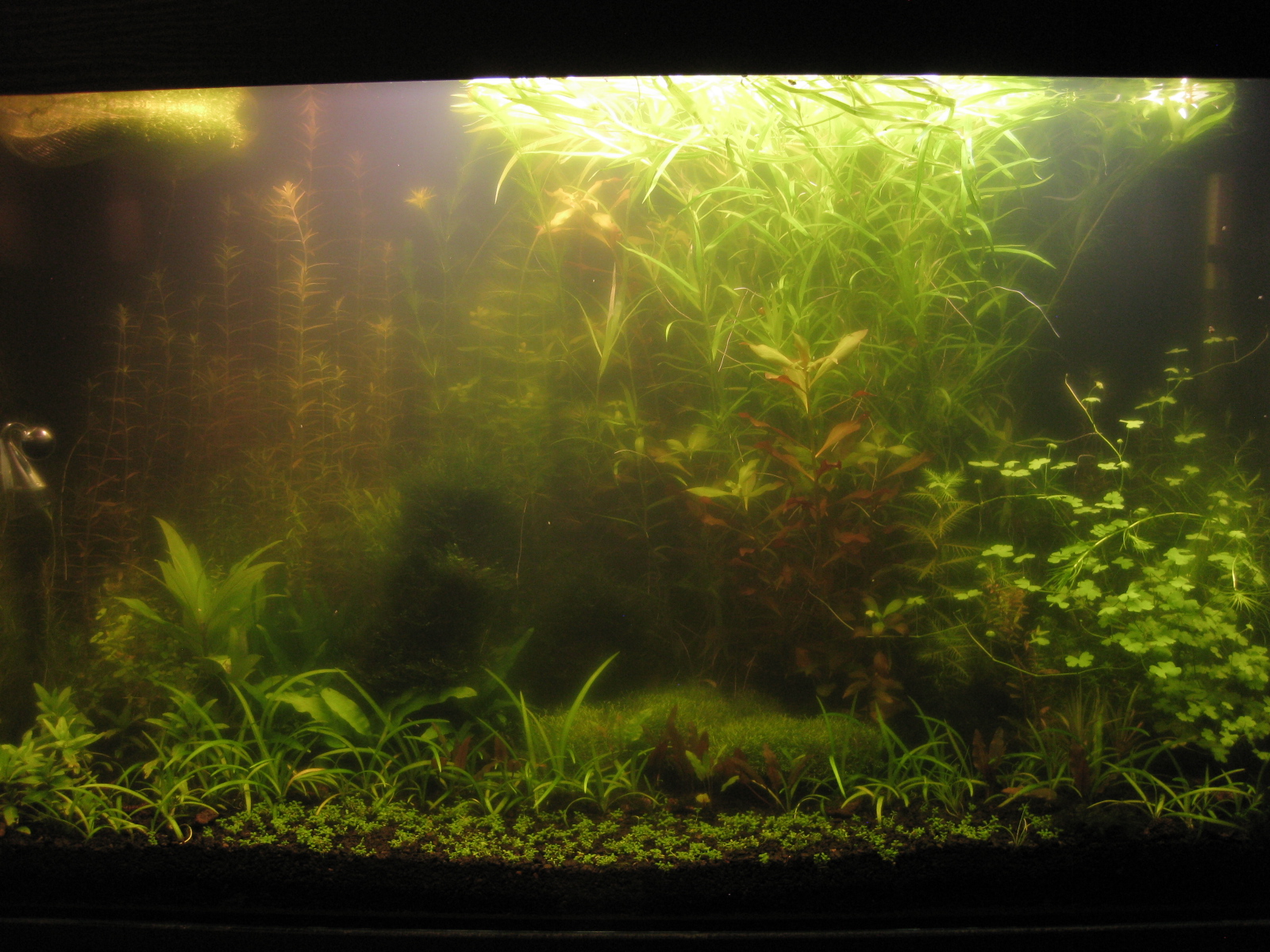 а в банке такие дела. как я говорил, УДО мне очень нравится (не для рекламы). гетерантера за два дня легла на поверхности, ротала была чуть ниже середины, сейчас тоже под верхом, дидиплис (справа), который стоял- думал 2 недели, я даже думал отправить его в мусор - полез вверх! вода уже не такая зелёная, завтра сделаю подмену и дам чуть света (часа 2-3 не больше). поглядим что будет дальше.