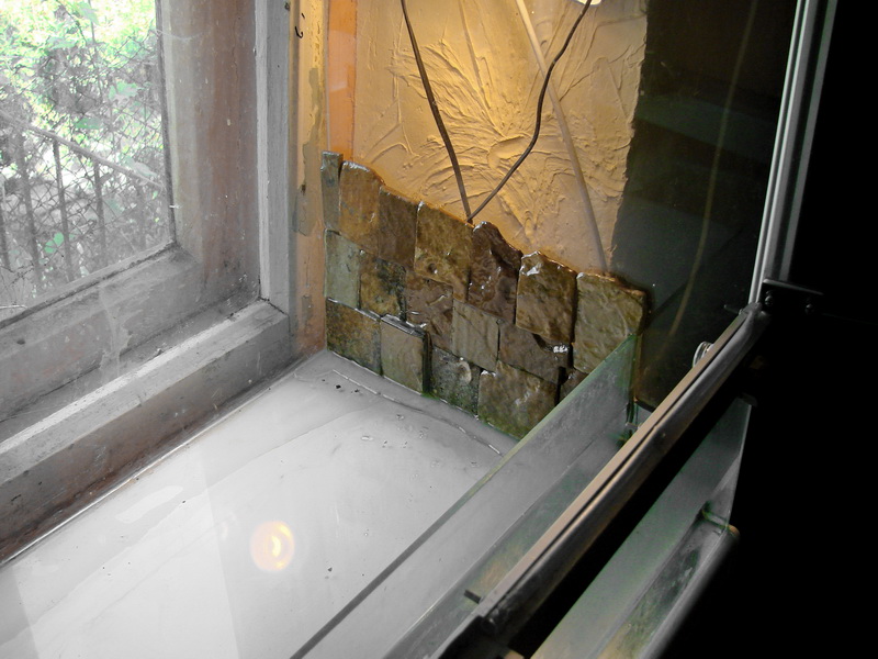Поклеил сегодня камушки на боковую стенку, к сожалению освещение не очень. видно плоховато. Что смущает на данный момент - камни, имеющие до этого разные оттенки приобрели одинаковый цвет.