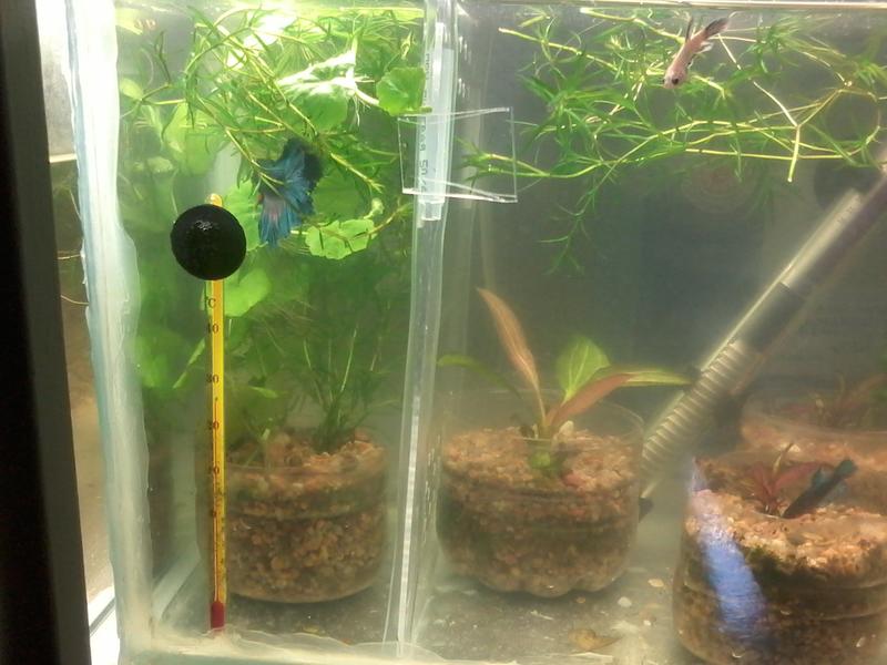 в случае, что на картинке, отсеки примерно 10*10*10 см3? по литру каждому, я бы подмены ежедневные 100% делала, грунт только мешаться будет