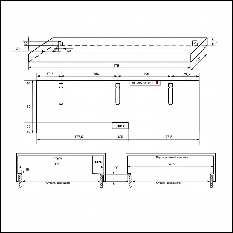 - предназначена для прямоугольного аквариума размерами 450х170;