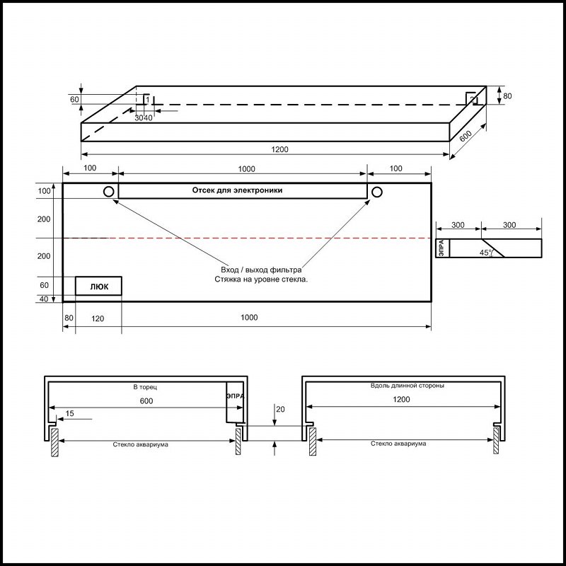 - предназначена для прямоугольного аквариума размерами 600х300;