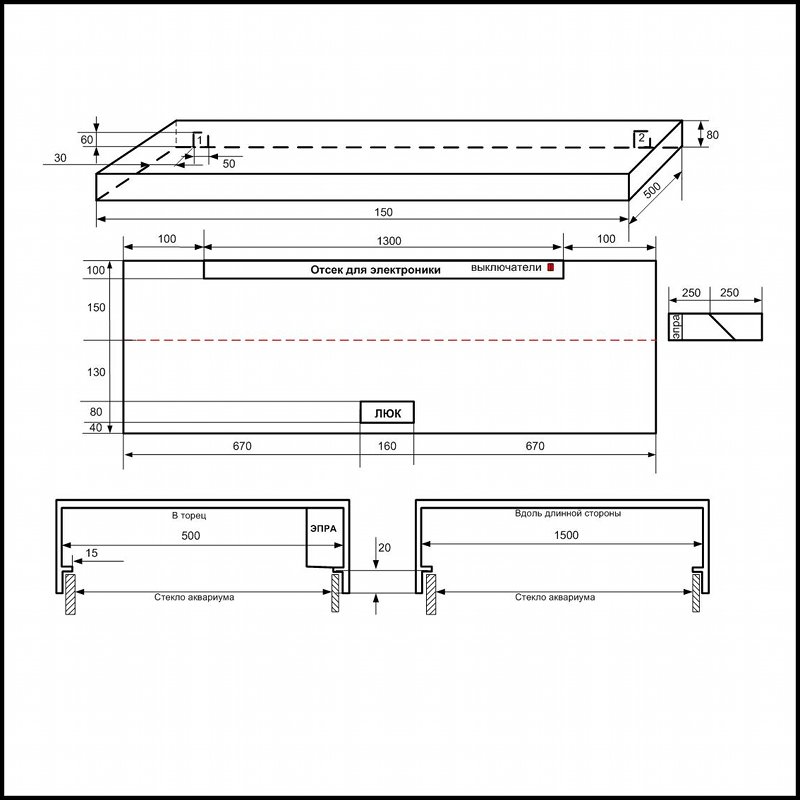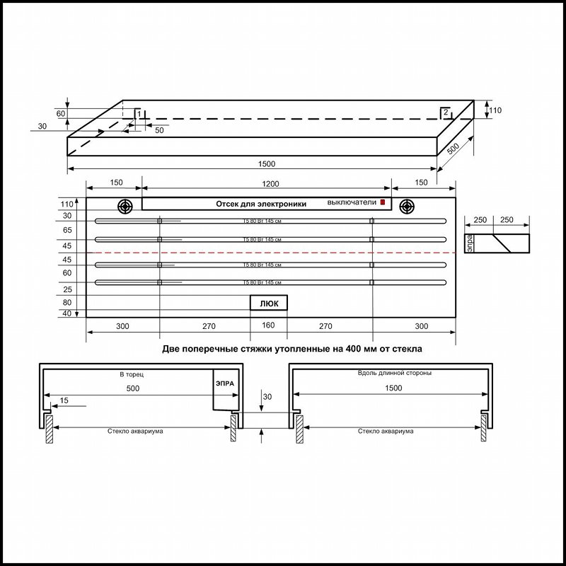 - предназначена для прямоугольного аквариума размерами 1500х500;