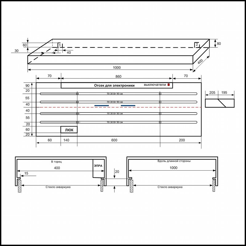 - предназначена для прямоугольного аквариума размерами 1000×400;