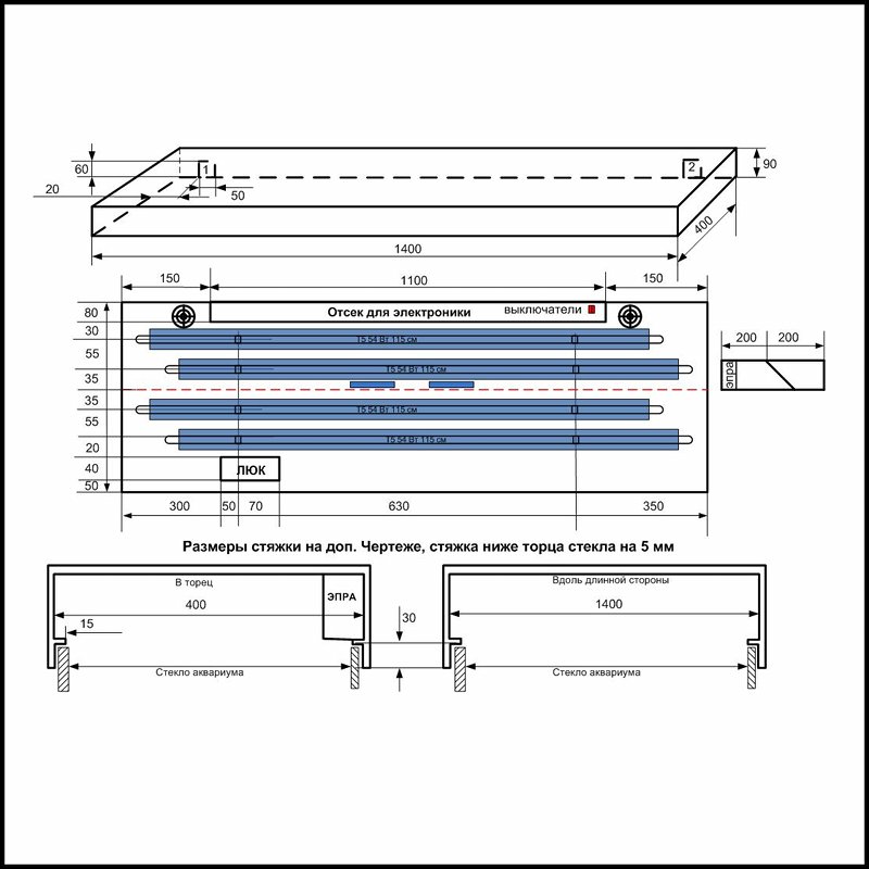 - предназначена для прямоугольного аквариума размерами 1400х400;