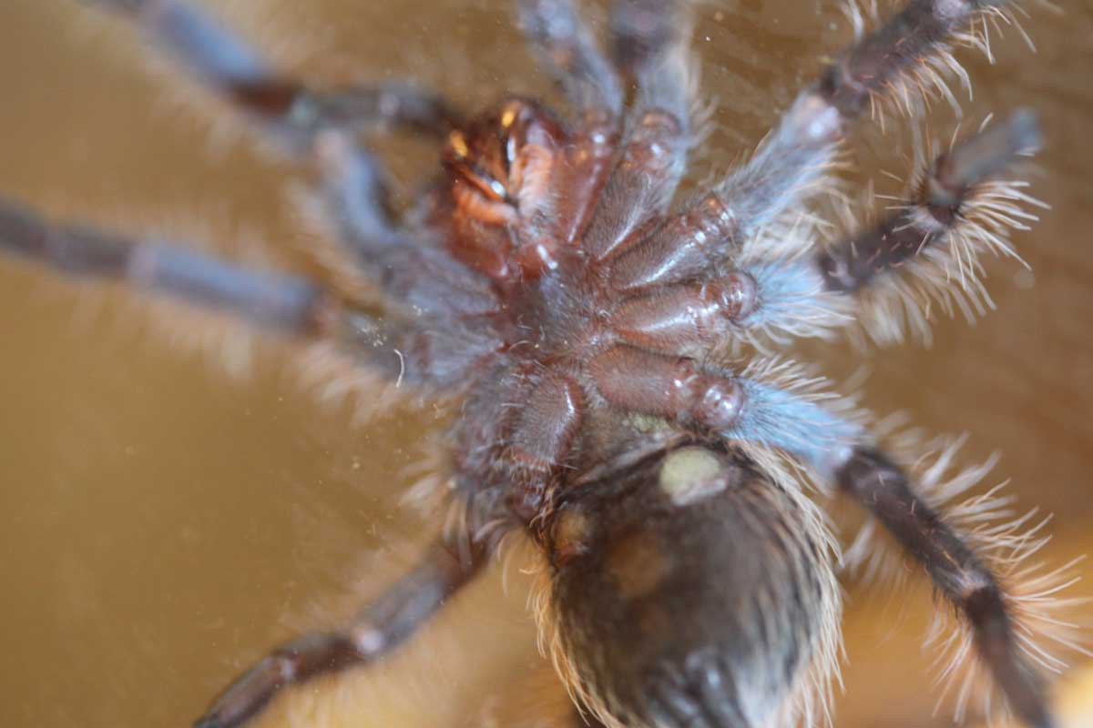TigerInside, попробуй выгнать паука на чистое стекло, тогда можно будет разглядеть нужное место