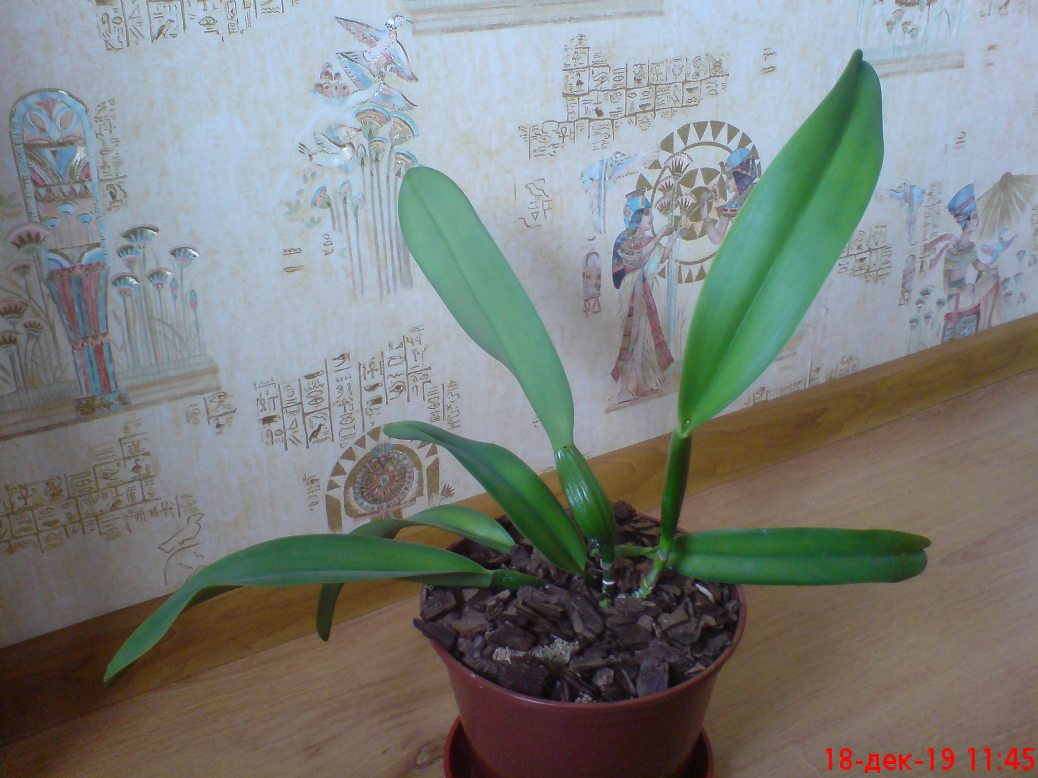 Cattleya dowiana 'Rosita' через 41 день после покупки и посадки. хорошо видно как подросли новые росты