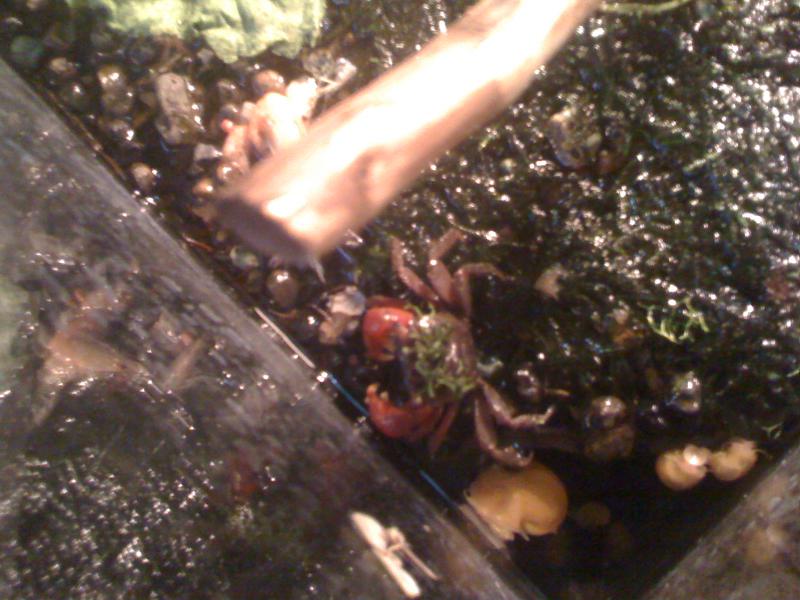 дэвилы самцы уже двараза перелиняли, то деруться то когда полиняют сидят вместе нетрогают друг дружку-непонятно! самки две штуки нашел но постоянно прячутся, аквас на 100 литров, места предостаточно для пяти крабов