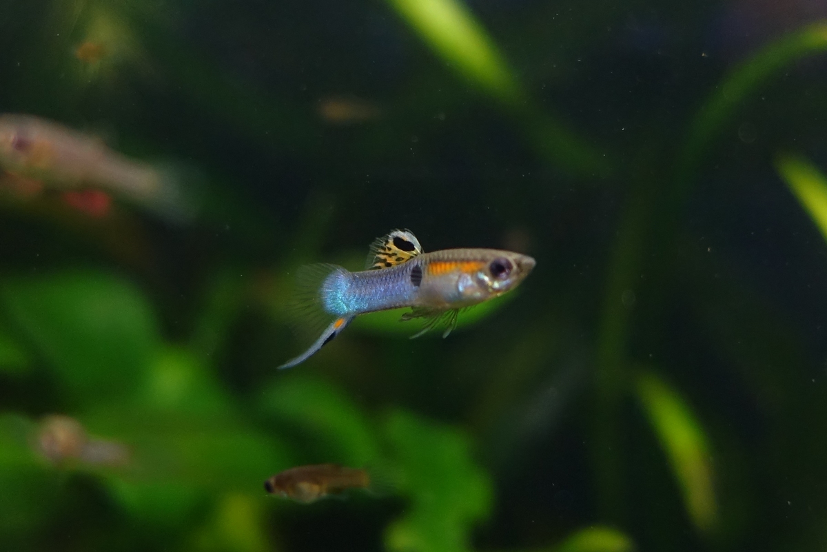 да, макро не лью. креветки, 2 сиамских водорослееда и стая гуппи эндлера рэд скарлет. кормлю заморозкой и сухими хлопьями.