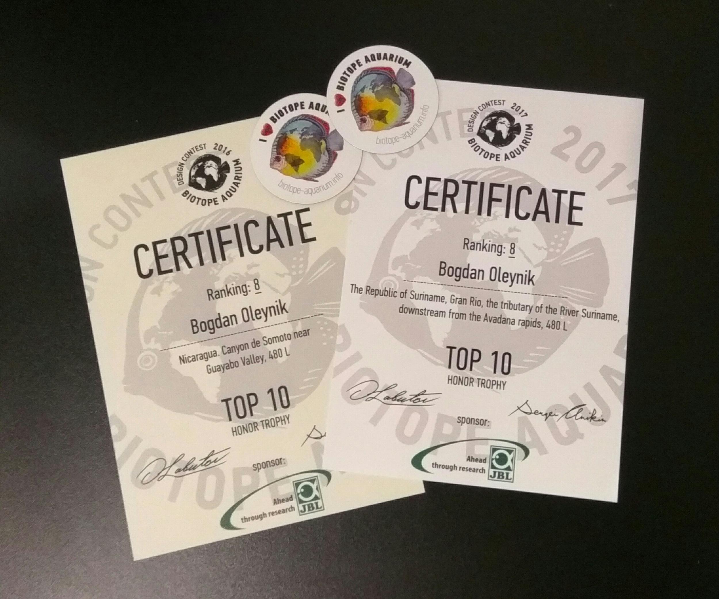 "Международный конкурс дизайна биотопных аквариумов - 2017" (http://biotope-aquarium.info/badc-2017/aquaria/) подходит к концу. В этом году мне снова удалось попасть в 10-ку лучших аквариумов мира среди 30 стран, заняв 8-е место с работой "The Republic of Suriname, Gran Rio, the tributary of the River Suriname, downstream from the Avadana rapids" (http://biotope-aquarium.info/aquariu...-rapids-480-l/). В прошлом 2016 году на этом конкурсе мне также посчасливилось занять 8-е место с работой "Nicaragua. Canyon de Somoto near Guayabo Valley, 480 L" (http://biotope-aquarium.info/aquariu...-valley-480-l/) тем самим за два года став обладателем двух 8-х мест. Хочу выразить благодарность организаторам конкурса за проделанную ими работу в подготовке конкурса, а так же судьям за объективное оценивание и пожелать им дальнейших успехов в развитии такого прекрасного конкурса.