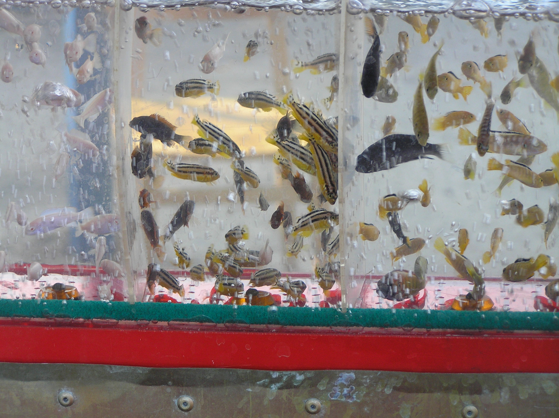 ...Но мой взгляд направляется дальше и в глубь рынка.И там вижу,что ,как и раньше стоят оквариумы,ширмы,а там тьма тьмущая рыбок.Пусть не так,как в былые годы,но все же нормально на первый взгляд.Делаю по рядам несколько проходов с виражами для поворотов.Как говорится,"иных уж нет,а кто далече".В то же время вижу,что кое- кто даже расширился,было по одной-две ширмы,а сейчс и поболее.