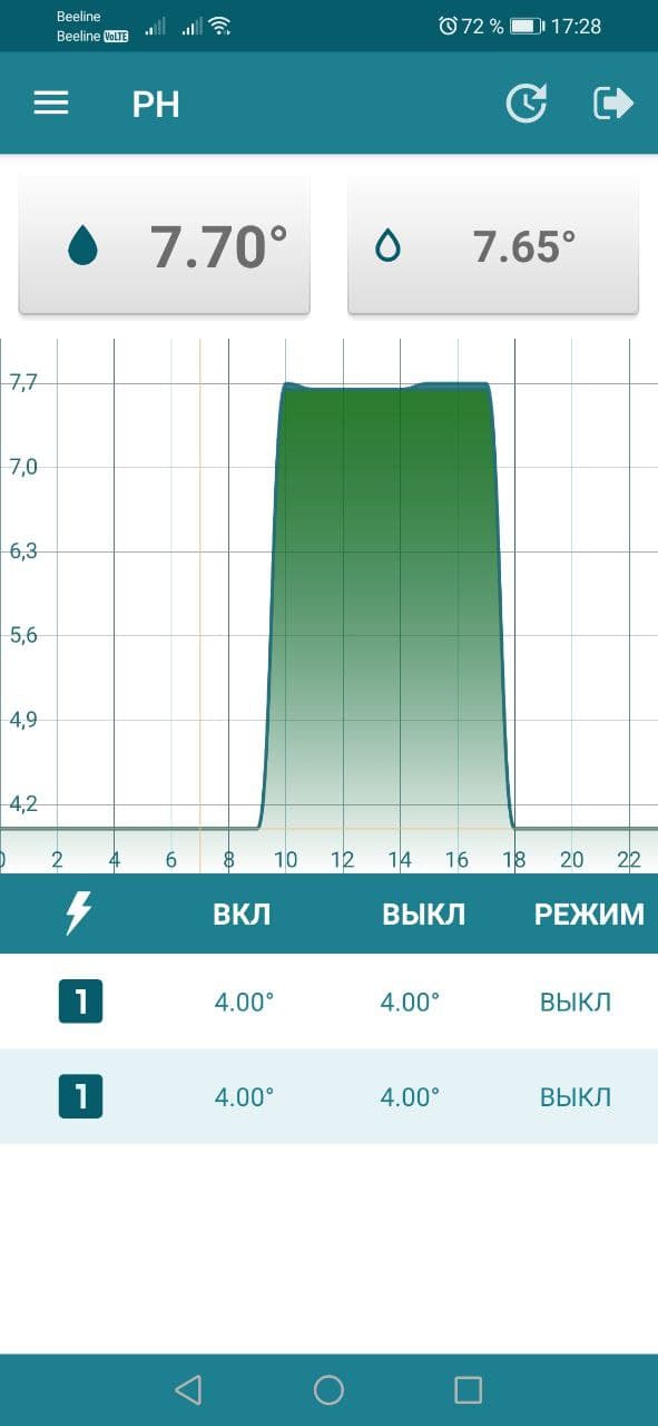 - Добавлено хранение статистики температуры и PH на устройстве, при перезагрузке контроллера все данные сохраняются.